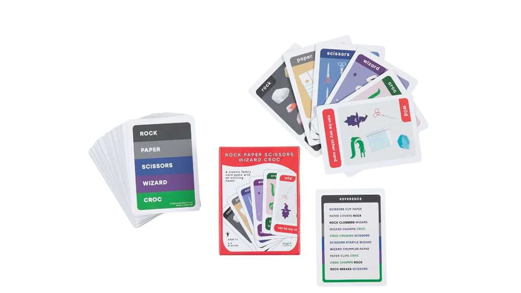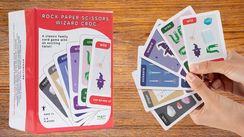 Ova kartaška igra kamen, papir, škare proširuje klasičnu igru s čarobnjakom, krokodilom i joker kartama: škare režu papir, papir pokriva kamen, kamen obara čarobnjaka, čarobnjak očarava krokodila, krokodil drobi škare, škare plaše čarobnjaka, čarobnjak gužva papir, papir štipa krokodila, krokodil grize kamen, kamen lomi škare, a joker karta pobjeđuje sve. Igrači mogu uživati u dvobojima jedan na jedan, igrama u grupi ili natjecateljskom stilu. Ova igra je zabavan način da se mladi igrači uvedu u svijet "strateških igara" i da male ruke vježbaju fine motoričke vještine držeći karte.