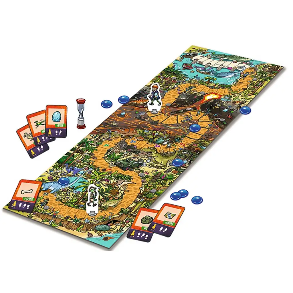 Detaljno ilustrirana ploča puna je sitnih detalja i skrivenih predmeta koji zaokupljaju pažnju djece i razvijaju njihovu sposobnost opažanja, koncentraciju i brze reakcije. Zbog jednostavnih pravila, igra se preporučuje već od 3 godine, tako da se i najmlađi lako mogu uključiti u svijet dinosaura.