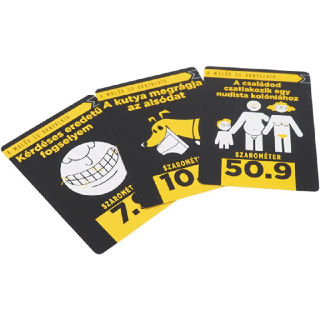Shit Happens je uzbudljiva društvena igra puna humora, iznenađenja i ludila, baš kao i stvarni život. Svaka karta skriva užasan događaj, s nazivom nesretne situacije, pripadajućom slikom i vlastitim brojem na "sranjometru". Jesu li se ti užasni događaji već dogodili tebi? Nije važno, ako nisu do sada, očekuj ih ubuduće! Humorom začinjena Shit Happens snažno se oslanja na crni humor i mješavinu neugodnih situacija. Karte su ocijenili stručnjaci za mentalno zdravlje od 1 do 100 i smjestili ih na skalu sranjometra. Budi prvi koji će uspjeti poredati 10 karata i možda pogoditi njihove točne vrijednosti. Tijekom igre, neka netko podijeli svakom igraču po 3 karte koje treba poredati u rastućem redoslijedu - i gotova je Linija bijede! Kada je hrabri djelitelj igrača spreman, on također započinje igru. Izvuci kartu za igrača s tvoje desne strane i pročitaj mu nesretnu situaciju. Ne mora pogoditi vrijednost, njegov zadatak je smjestiti je na odgovarajuće mjesto u svojoj Liniji bijede - stoga mu nemoj čitati broj na karti. Tko od vas najbolje može procijeniti neugodne i mučne situacije? Što je neugodnije: ući roditeljima dok žele privatnost ili zaključati se izvan kuće gol?
