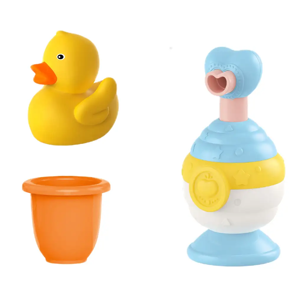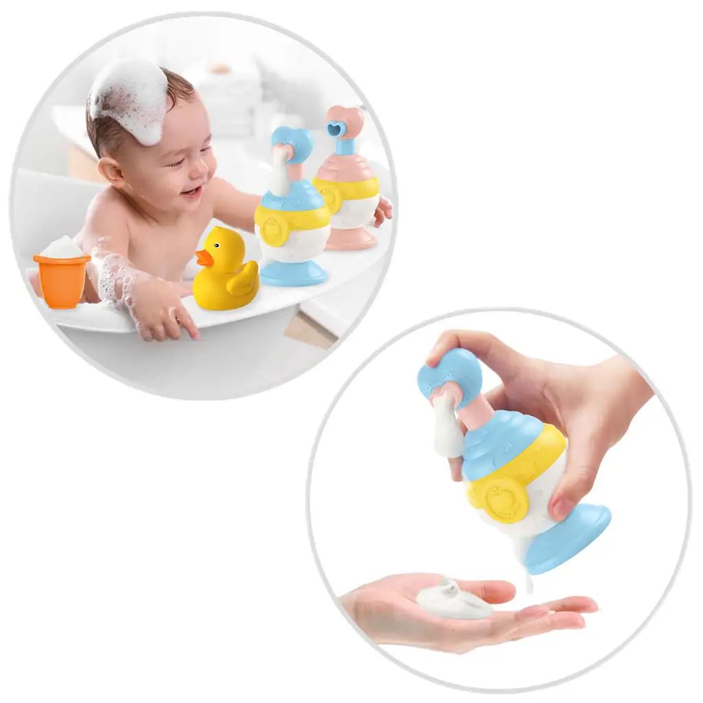 Set igračaka za kupanje s patkama sve je što je potrebno da bi kupanje vašeg djeteta bilo veselo i zabavno. Ovaj paket uključuje dozator za gel za tuširanje s pumpicom u obliku srca koji je lako upotrebljiv za dijete i pomaže učiniti proces čišćenja još zabavnijim.