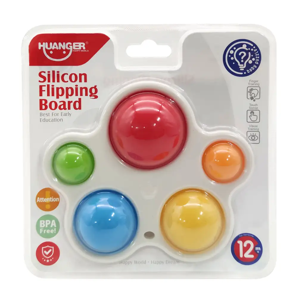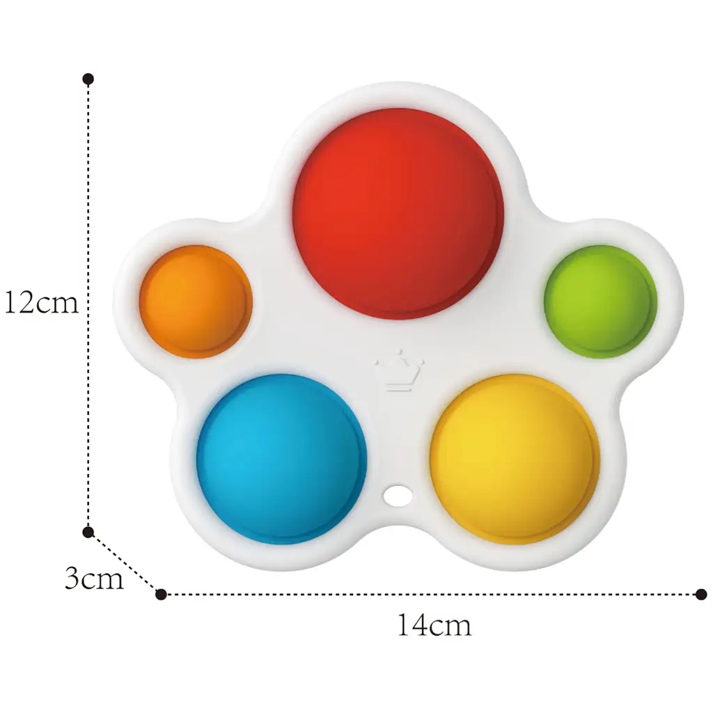 Igračka ima bijelu podlogu s pet različitih veličina i boja malih mjehurića koji se tijekom igre izbočuju i uvlače dok djeca pritišću i istražuju ih. Ovaj dinamički pokret ne samo da je zabavan, već pomaže i u razvoju motoričkih vještina malih djece.