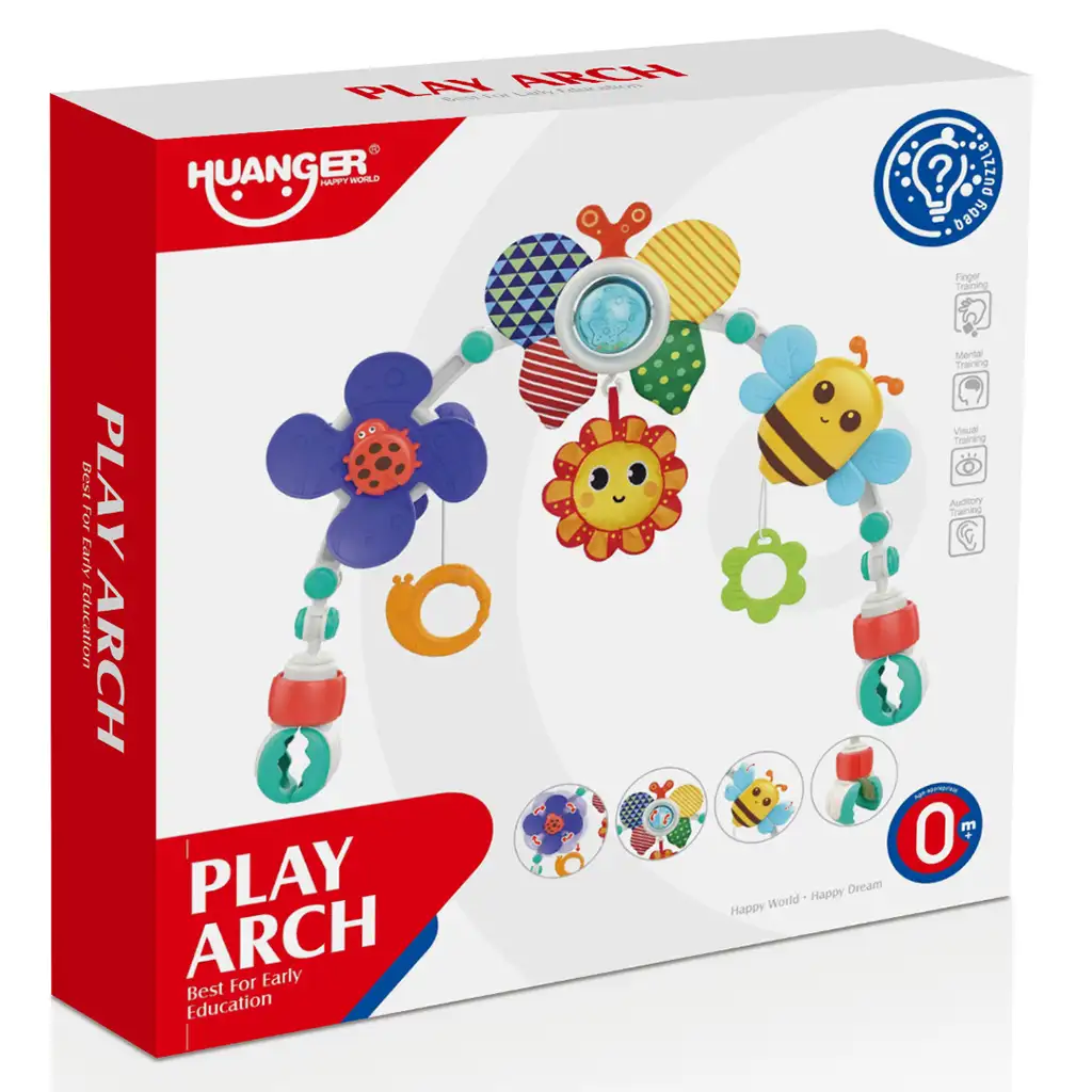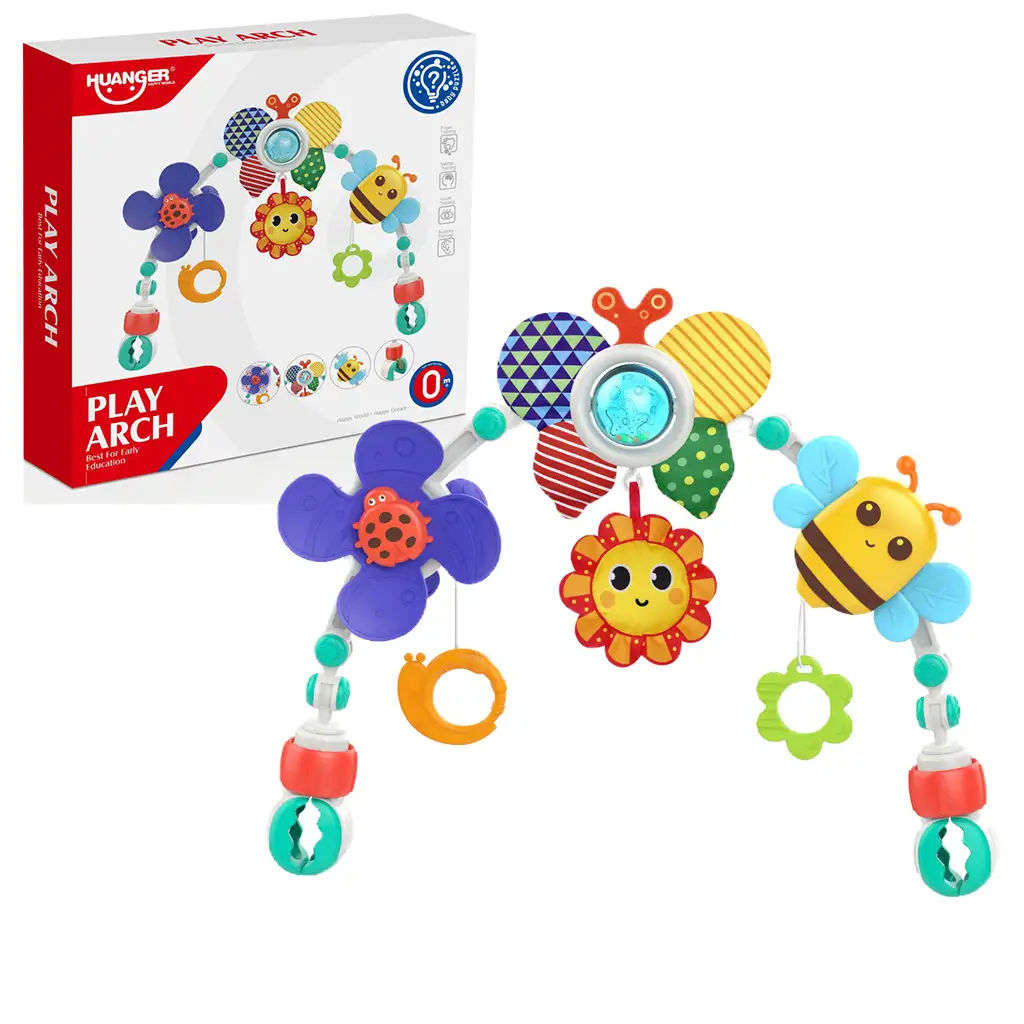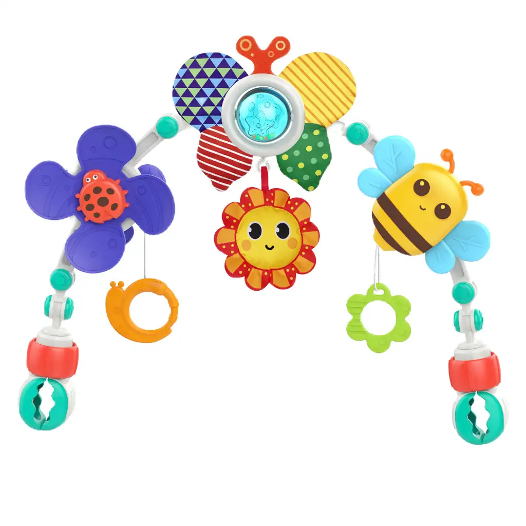 Na igrački se nalaze vesela pčelica, sunce, leptir i bubamara koji izvrsno stimuliraju osjetila i znatiželju beba. Ovi elementi igračke imaju žive boje i različite teksture koje pomažu u razvoju vida i dodira. Osim toga, elementi koji vise s igračke još više privlače dječji interes i potiču na igru.