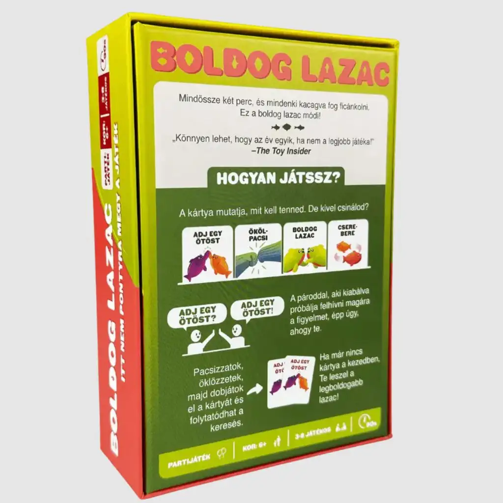Otkrijte društvenu igru Sretni Losos, koja se vraća u ažuriranoj verziji kako bi ponovno razveselila obitelji i prijateljske skupine. Ova igra je savršen izbor za sve uzraste, jer svojim brzim tempom i jednostavnim pravilima odmah osvaja sve. Sretni Losos je zaista posebna party igra koja će zajamčeno podići atmosferu na bilo kojem okupljanju.