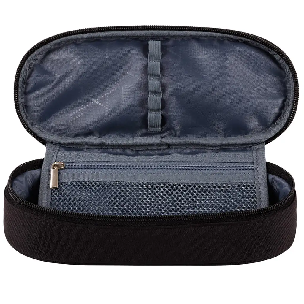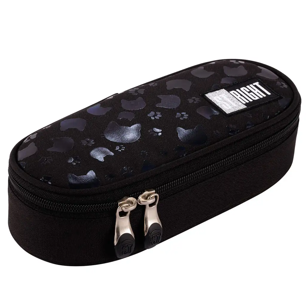 St.Right Black Cats ovalni pernica s mačkama savršen je izbor za svakog školarca koji voli stilske i praktične školske dodatke. Ova pernica dolazi u elegantnoj crnoj boji, ukrašena diskretnim, sjajnim uzorcima mačaka, što joj daje zaista moderan izgled.