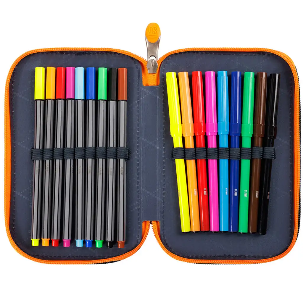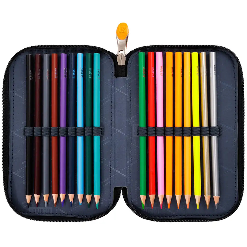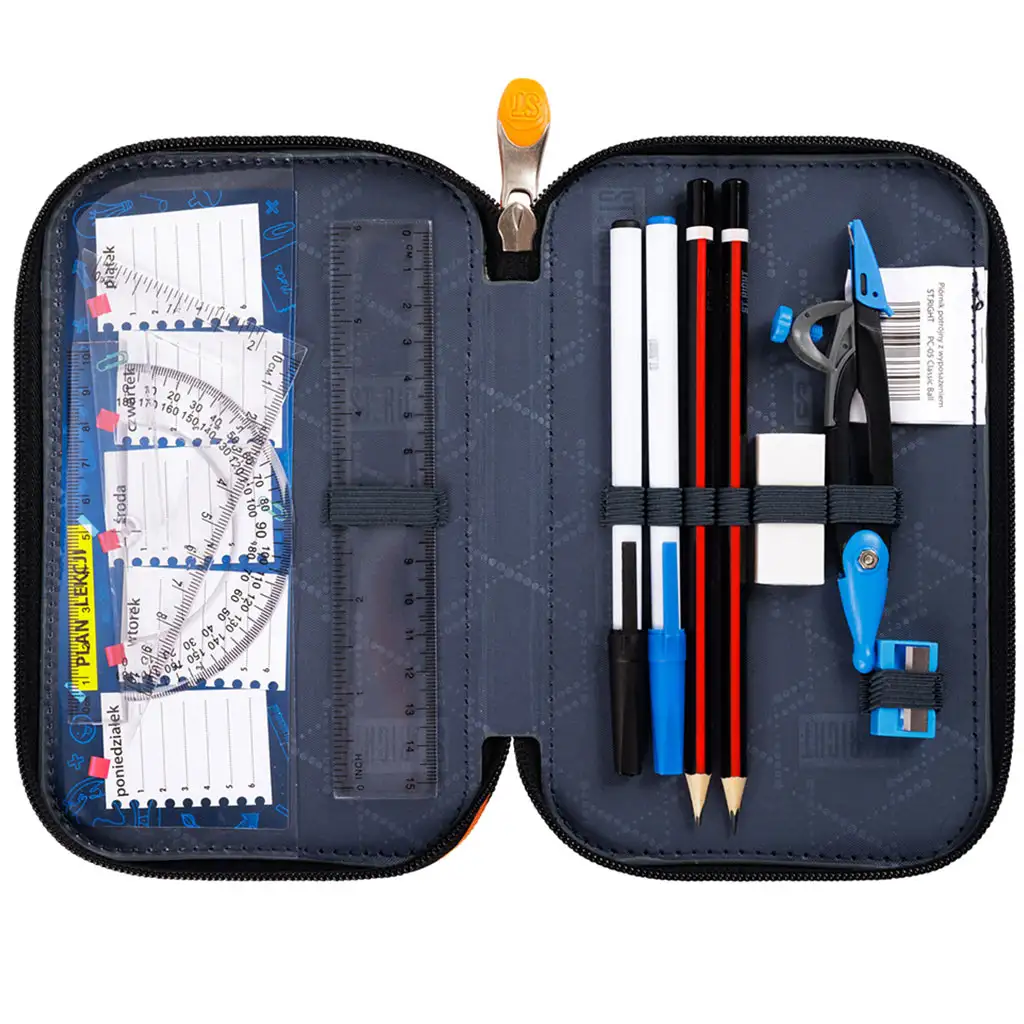 Pernica ima tri odvojena pretinca s patentnim zatvaračem koji pružaju dovoljno prostora za školski pribor. Izrađena od čvrstih materijala, pernica je izdržljiva i dizajnirana za dugotrajnu upotrebu. Ergonomske ručke na patentnim zatvaračima i ojačana struktura osiguravaju da pernica zadrži svoj oblik i pruža zaštitu za pohranjeni pribor.