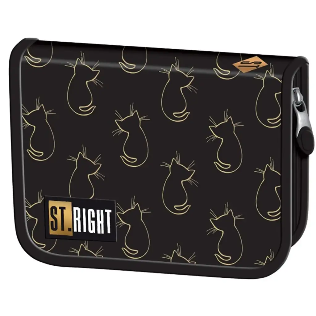 St.Right Golden Cats preklopna pernica PC03 savršen je izbor za sve školarce koji vole mačke i elegantne, modern stil dodatke. Pernica, ukrašena zlatnim obrisima mačaka na crnoj podlozi, pruža zaista moderan i trendi izgled, a zahvaljujući praktičnoj unutrašnjoj organizaciji lako je urediti sve pisaće potrepštine koje se svakodnevno koriste.