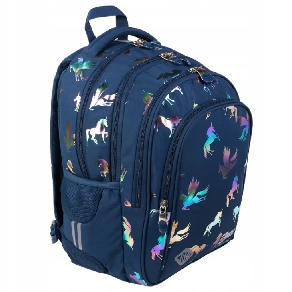 Ako tražimo zaista praktičan i udoban školski ruksak za našu kćer, nećemo se razočarati u St.Right Hologram Unicorn ruksaku, a tamna osnovna boja i uzorak jednoroga sigurno će osvojiti srca djevojčica. Zahvaljujući podstavljenom dizajnu leđa i podesivim, širokim naramenicama, ruksak je udoban za djecu. Kvalitetan, vodootporan materijal čini školski ruksak praktičnim za pohranu, jer ima nekoliko velikih pretinaca i džepova na zatvarač za knjige i bilježnice, kao i džep na strani s gumenim trakama za bočicu. Naposljetku, ali ne manje važno, ojačano dno je vrlo korisno jer osigurava dug vijek trajanja ruksaka.