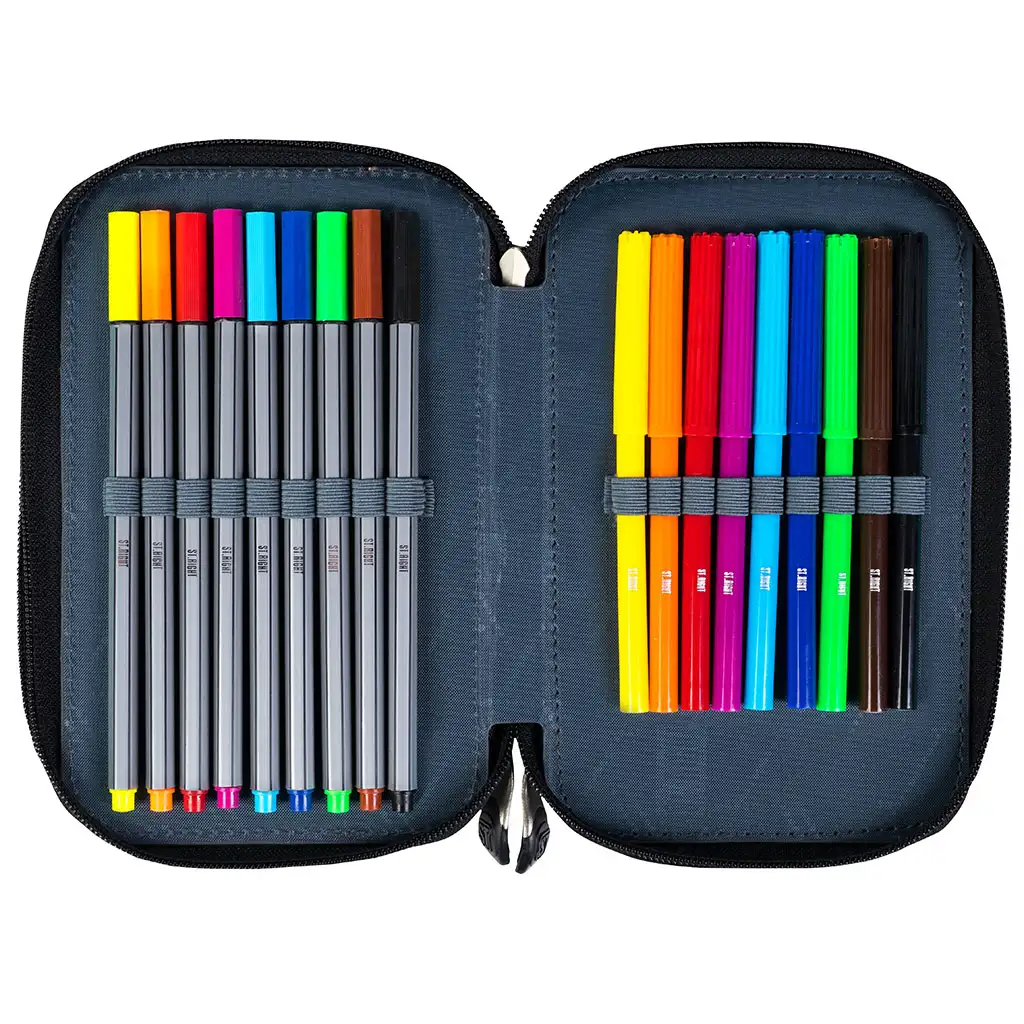 Pernica ima tri odvojena pretinca, svaki s patentnim zatvaračem, tako da možete sigurno i organizirano držati sve školske potrepštine. Ergonomske ručke na patentnim zatvaračima lako se koriste, čak i za najmanje ruke. Brojni držači i pregrade unutar pretinaca pomažu u urednom skladištenju olovaka, kemijskih olovaka i drugih alata, tako da uvijek možete lako pronaći ono što vam treba.
