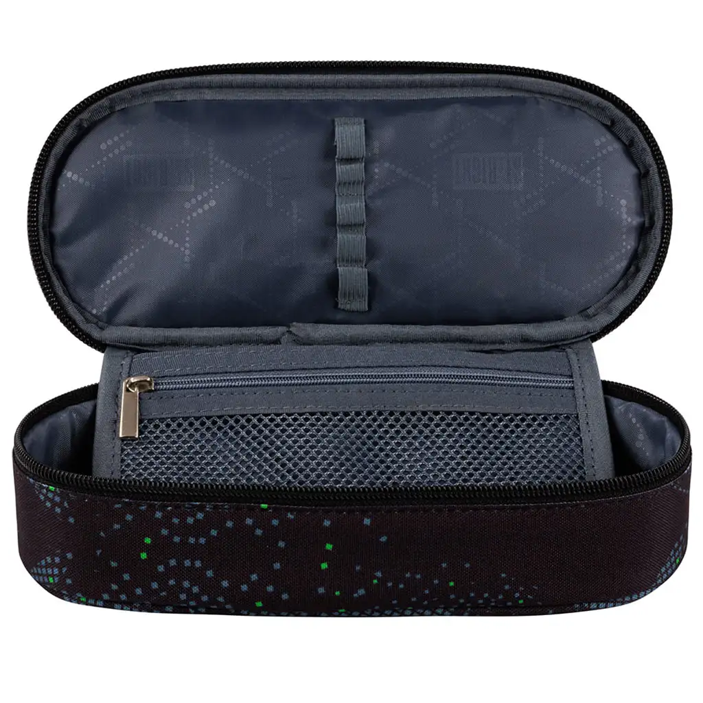 Unutrašnjost pernice je prostrana, pružajući dovoljno prostora za sve potrebne pisaće pribore. Podstavljeni glavni pretinac štiti olovke, kemijske olovke i druge dodatke kako bi uvijek bili sigurni. Unutarnji džep s patentnim zatvaračem savršen je za pohranu manjih predmeta poput gumica ili šiljila, tako da je sve uvijek pri ruci kada je potrebno. Elastične petlje u poklopcu pomažu u održavanju reda među pisaćim priborom, tako da ih nije potrebno tražiti.