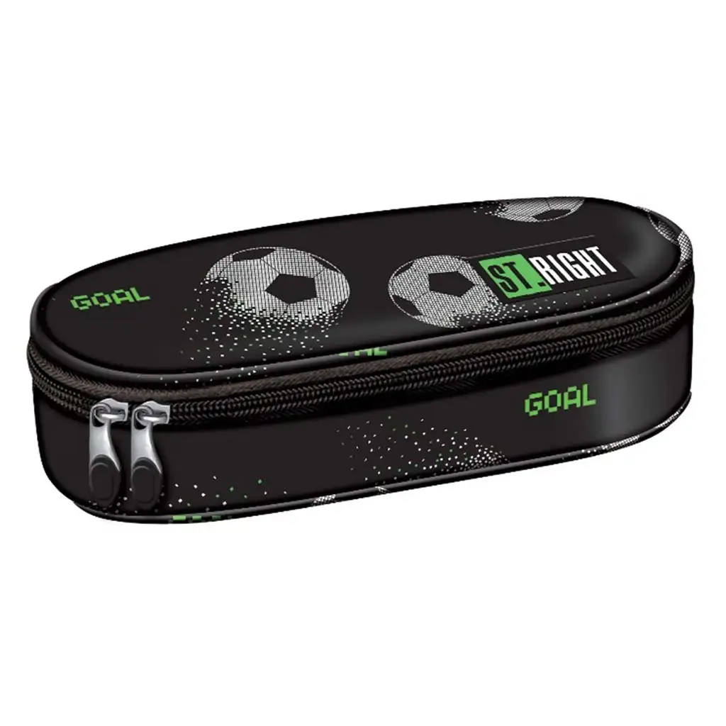 Pixel Balls ovalna pernica (23x9,5x6 cm) pravi je izbor iz snova za svakog malog školskog nogometnog fana. Bijele nogometne lopte s pixel efektom na crnoj podlozi i živopisni zeleni natpisi „GOAL” daju ovom praktičnom školskom dodatku dinamičan, sportski izgled. Ova pernica nije samo moderna, već i funkcionalna, pomažući djeci da svoja pisala drže uredno posložena.