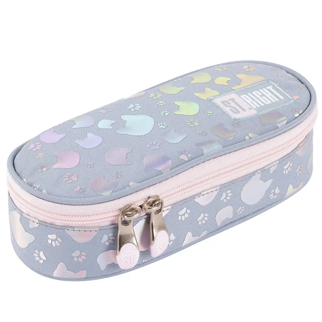 St.Right Silver Cats ovalni pernica s mačkama veličine 23 cm idealan je izbor za svakog školarca koji voli mačke i stilske školske dodatke. Ova pernica je ukrašena elegantnim, srebrnim uzorkom mačaka i malim otiscima šapa, što će zasigurno uljepšati svakodnevne školske aktivnosti.