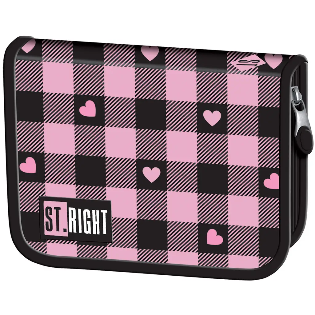 St.Right ružičasto-crno pernica s uzorkom srca na preklop PC03 nije samo praktičan školski pribor, već i moderan dodatak. Crno-ružičasti karirani uzorak je moderan i trendi, a šarmantna mala srca čine ga zaista posebnim. Ova pernica odličan je izbor ako tražiš komad koji izražava osobnost tvog djeteta i unosi veselje u školske dane.