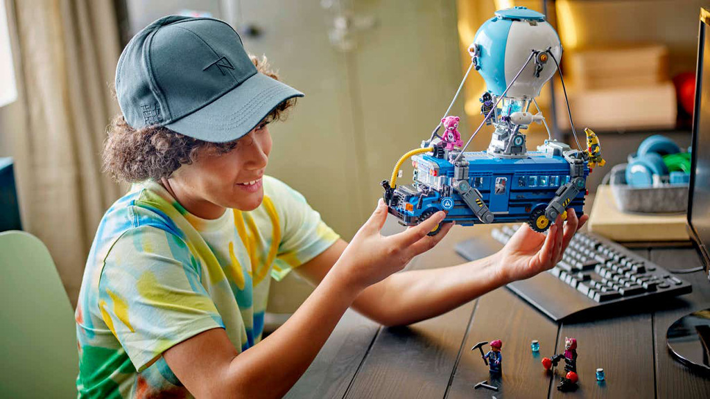 Trenutna LEGO Fortnite kolekcija završava s Battle Busom od 954 dijelova. To je replika balona na vrući zrak iz igre, s "kotačima koji se kotrljaju, plavo-žutim balonom i uklonjivim krovom". Set uključuje Slurp Juice, Pickaxe-e, Grappler i Slap Juice, kao i devet LEGO minifigura: Battalion Brawler, Adventure Peely, Brite Bomber, Cube Assassin, Trespasser Elite, Raven, Meowscles, Drift i Cuddle Team Leader. Graditelji od 10 godina nadalje mogu postaviti minifigure u autobus!
