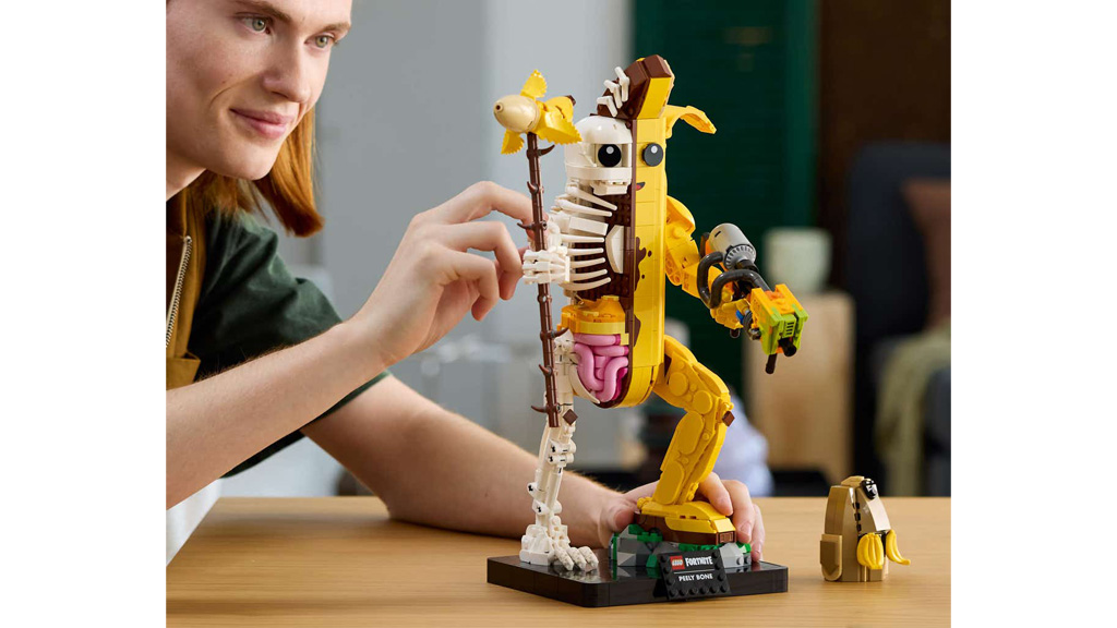 LEGO Fortnite kolekcija najveći set, Peely Bone, namijenjen je graditeljima od 18 godina i starijima — starija braća možda bi rado vodila gradnju. Kolekcionarski set od 1.414 dijelova ima pokretne ruke i dodatke poput Peely Pick Čekića, Paint Blastera i Banana Bag Ruksaka.