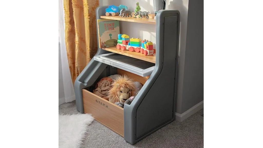 Ova Step2 kutija za pohranu izrađena je od mješavine drva i plastike, i dizajnirana je tako da zadovolji potrebe djece različitih dobnih skupina. Karakteristike kutije uključuju veliki donji prostor za pohranu, kao i police za knjige i igračke.