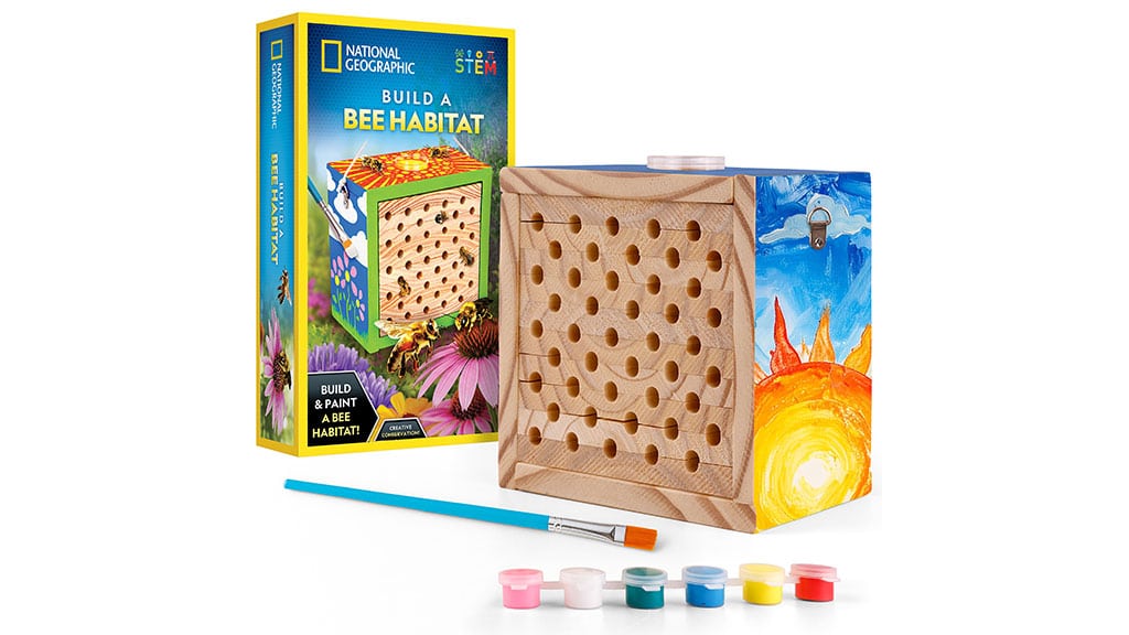 A Blue Marble National Geographic Pčelinje Stanište kreativni građevinski set sadrži sve što je djeci potrebno kako bi izgradili čvrst dom za samotne pčele. Obitelji mogu jednostavno sastaviti kućicu od drva pomoću odvijača (nije uključen u paket). Nakon toga, priloženim bojama, kistom i naljepnicama mogu ukrasiti set po želji, tako da svatko može stvoriti jedinstveni i šareni hotel za pčele. Kada je stanište gotovo i lijepo ukrašeno, djeca ga mogu objesiti vani i promatrati kako se samotne pčele useljavaju u svoj novi dom. Set uključuje i dnevnik za promatranje, u koji djeca mogu zapisivati ponašanje pčela, svoja zapažanja, pa čak i crtati svakodnevicu pčela. Ovaj set nije samo zabavan, već i potiče ekološku svijest, dok istovremeno razvija spretnost i kreativnost.