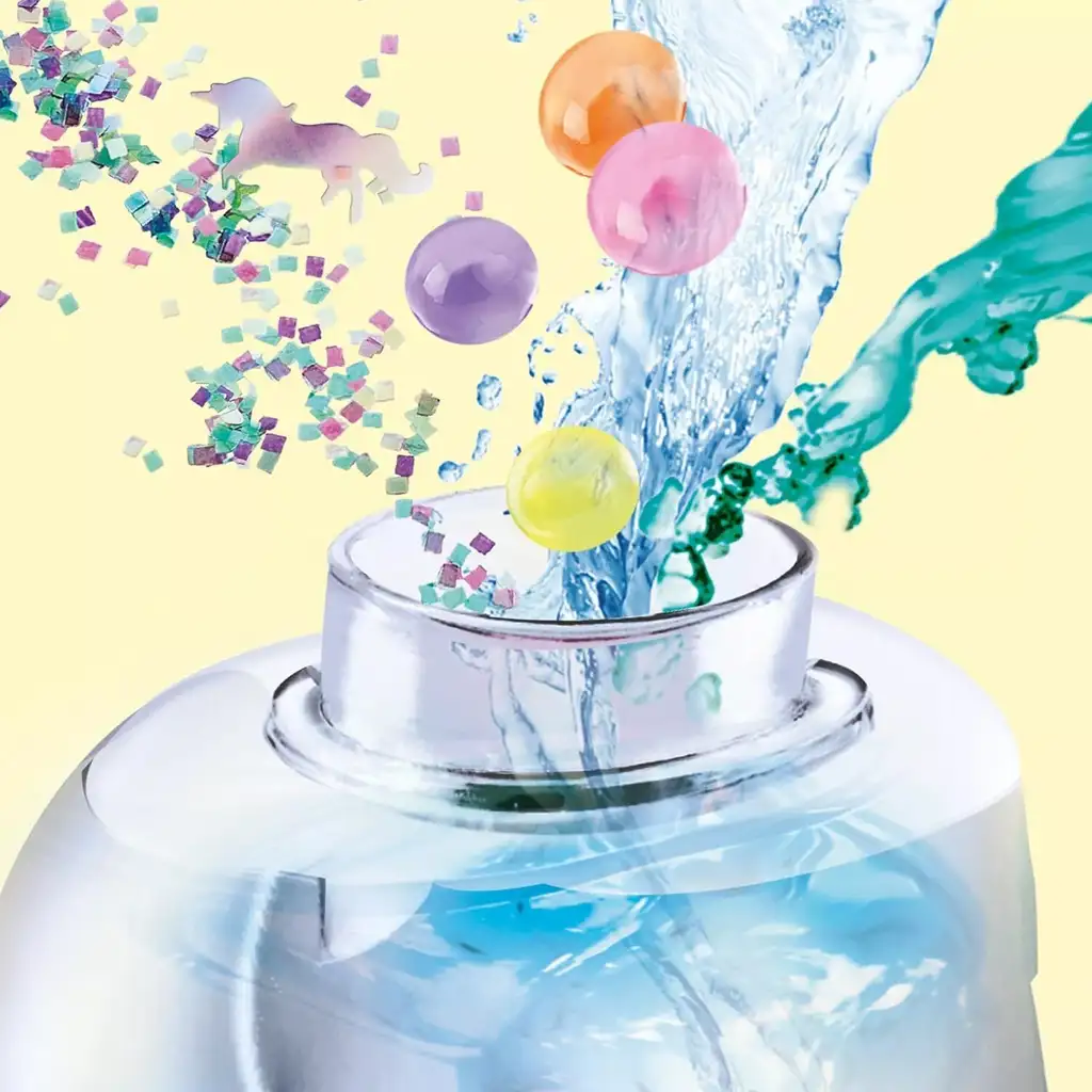 Set sadrži sve potrebne sastojke: perle, konfete, šarene dekorativne elemente, naljepnice, kao i specijalnu tekućinu koja oživljava čarobno kretanje lava lampe. Djeca mogu sama dodavati ukrasne elemente i miješati tekućinu u prozirnom kućištu lampe u obliku jednoroga – tako da svaka lava lampa postaje potpuno jedinstvena. Gotova lampa također svijetli, pružajući prekrasno ambijentalno svjetlo u sobi noću.