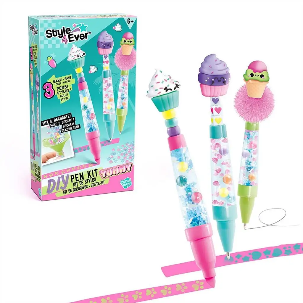 Oslobodi kreativnost svog djeteta uz Style 4 Ever DIY Set za izradu vlastitih kemijskih olovaka, koji nije samo zabavan, već i potiče razvoj vještina! Ovaj čarobni set omogućuje djeci da sama izrade unikatne olovke, ukrašene slatkim životinjskim figuricama ili motivima omiljenih slastica. Set sadrži sve potrebne elemente za izradu tri potpuno personalizirane olovke, uključujući šarene perlice, šljokice, pahuljaste ukrase te posebne završetke olovaka poput mačje glave, sladoleda ili šape.
