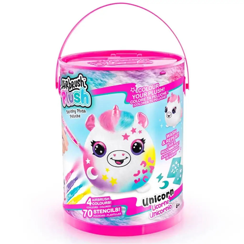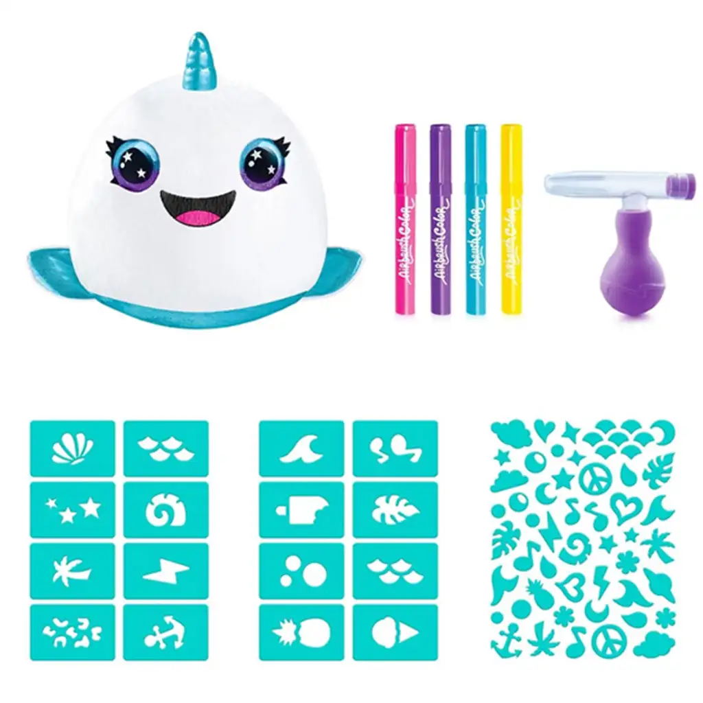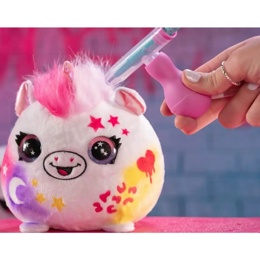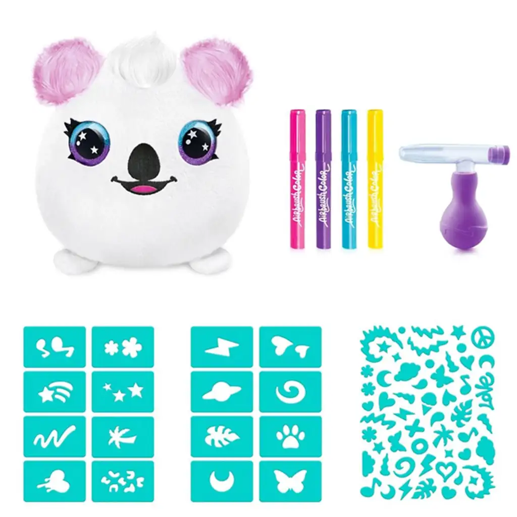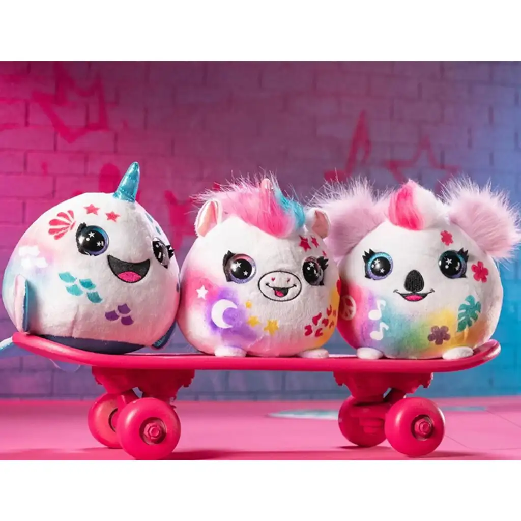 Mini Airbrush plišani prijatelji savršen su izbor ako želite zaista jedinstvenu i kreativnu igračku. Ovi mali plišani od 15 cm dolaze u kompaktnoj kanti, tako da ih možete ponijeti bilo gdje. Ono što ih čini posebnima je to što ih možete sami obojiti jedinstvenim pumpnim sprejom i priloženim flomasterima. Tubica može sadržavati slatkog jednoroga, šarmantnog koalu ili čak ljubaznog narvala, tako da svaki mali plišani životinja skriva različite uzbudljive mogućnosti.