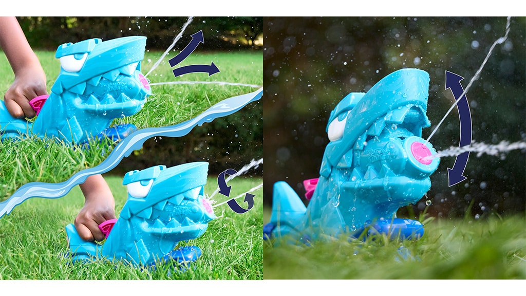 A NERF Super Soaker Hop & Chomp je fantastična vodena igračka za djecu od 3 godine nadalje. Posebnost ove igračke je što ima mlaznicu u obliku morskog psa, koja iz čeljusti ispaljuje dva mlaza vode dok izvodi pokrete grizenja, tako da vodena prskanja uvijek dolaze iznenada.