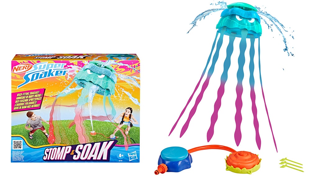 Dva nova proizvoda pridružuju se Nerf Super Soaker seriji: NERF Super Soaker Stomp & Soak i NERF Super Soaker Hop & Chomp vodene igre, koje su već dostupne. Super Soaker Stomp & Soak posebno je dizajniran za djecu od 4 godine i starije. Igračka sadrži meduzu koju je moguće lansirati u zrak pomoću lansirne podloge, a iz gornjeg dijela zvona meduze prskaju mlazovi vode. Kraci meduze također prskaju vodu u svim smjerovima, čineći igru još uzbudljivijom. Samo priključite lansirnu podlogu na funkcionalno crijevo za zalijevanje i Super Soaker Stomp & Soak odmah će se pobrinuti za zabavu! Ova igračka je savršen izbor za ljetne vodene bitke i sigurno će uljepšati vrtne zabave ili obiteljska okupljanja.
