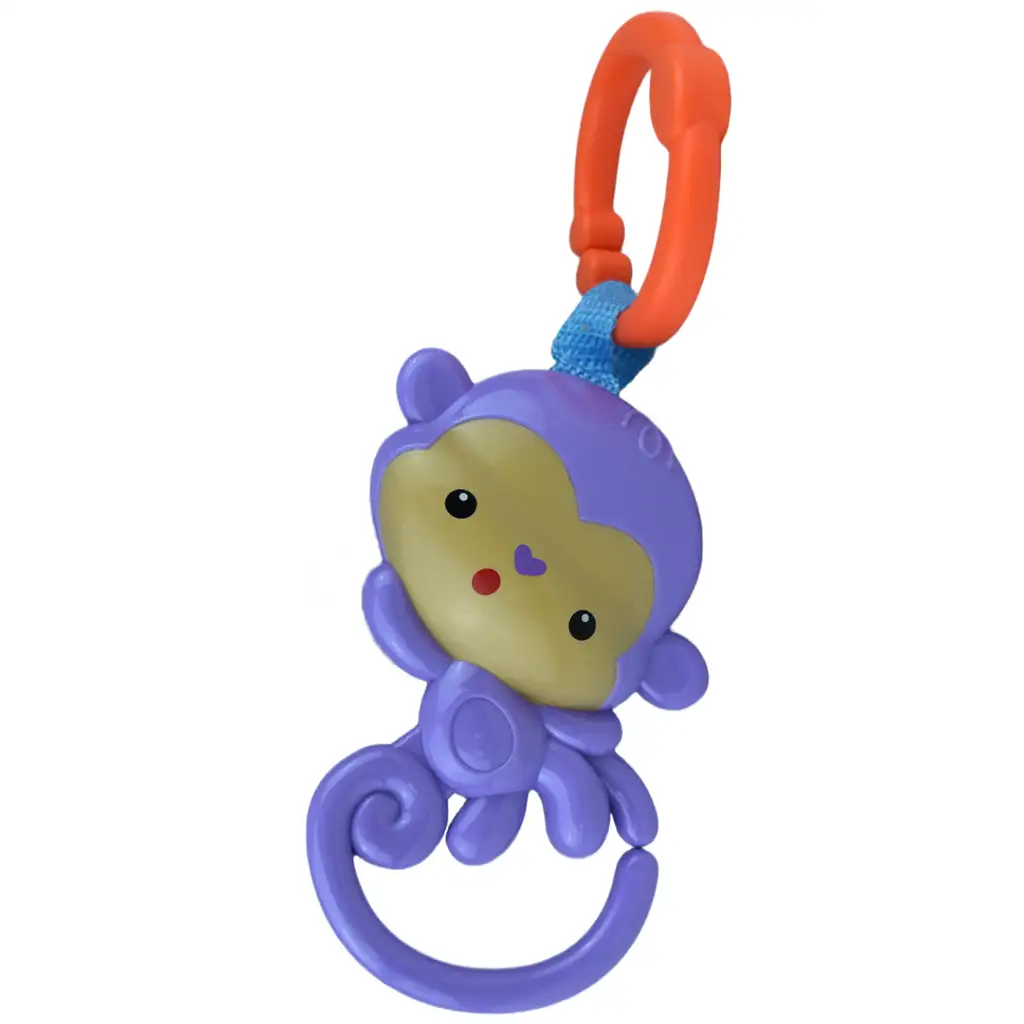 Unesite radost igre i zabave u život vaše bebe s ovom očaravajućom ljubičastom majmunskom zvečkom! Simpatična plastična figura majmuna nije samo vesela, već dolazi s lako pričvrstivim otvorivim plastičnim prstenom koji omogućuje da se jednostavno pričvrsti na rub krevetića ili kolica.