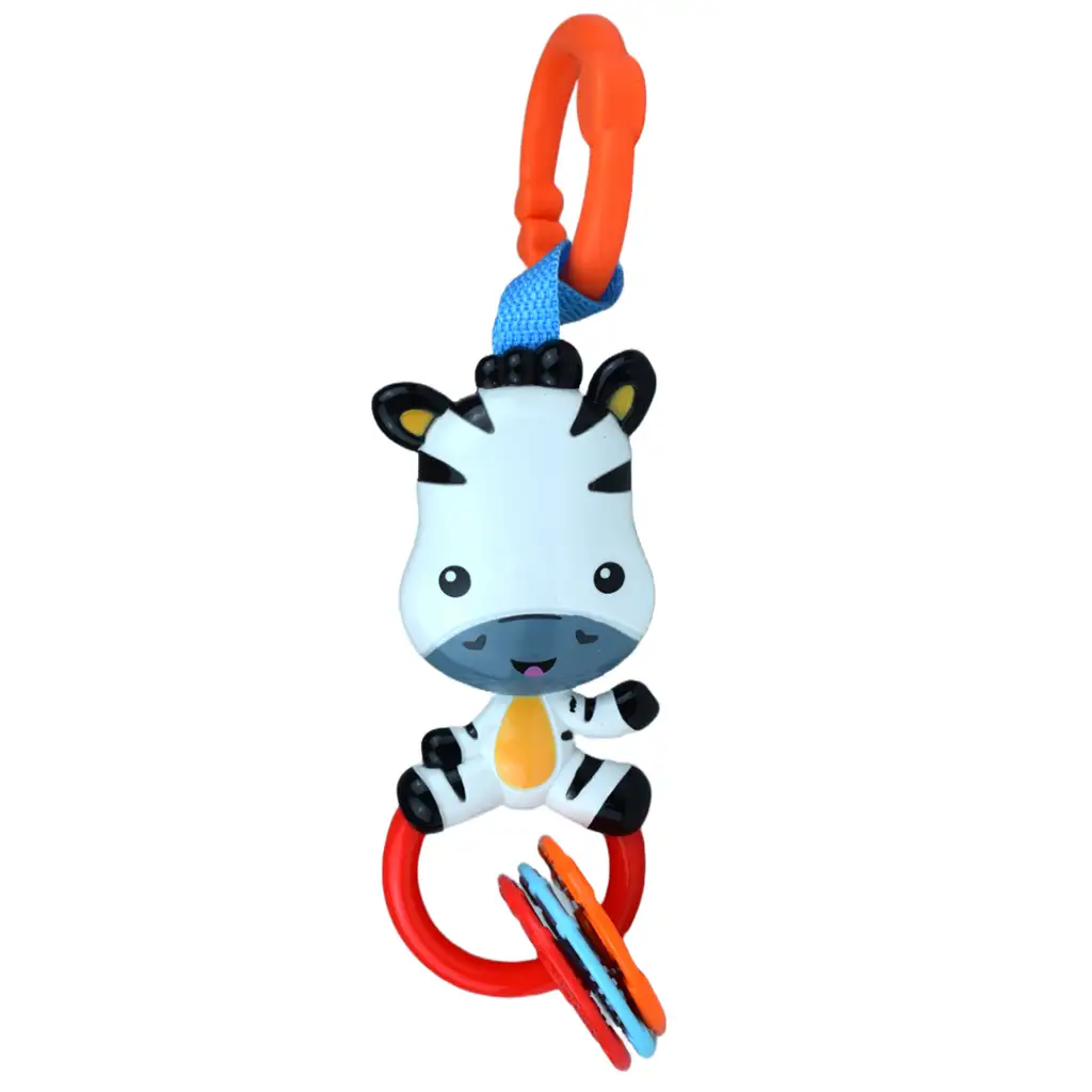 Unesite radost igre i zabave u život vaše bebe s ovom očaravajućom zebra zvečkom! Simpatična plastična figura majmuna nije samo vesela, već dolazi s lako pričvrstivim otvorivim plastičnim prstenom koji omogućuje da se jednostavno pričvrsti na rub krevetića ili kolica.