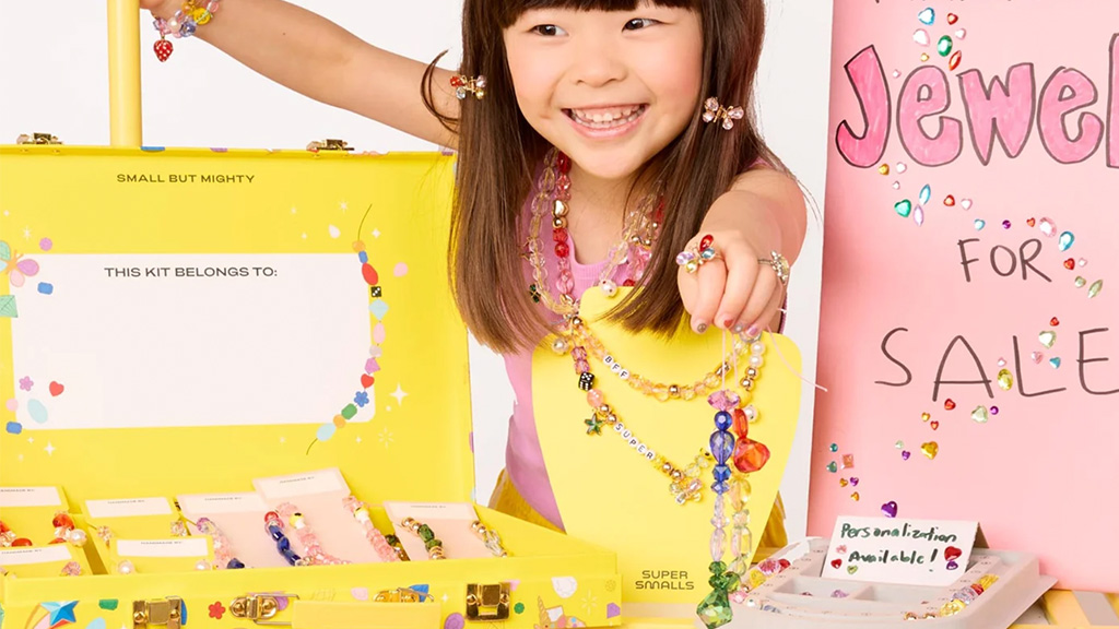 Super Smalls je modna i dodatna marka za djecu koju je osnovala Maria Dueñas Jacobs, bivša urednica modnog časopisa. Posebnosti marke uključuju čarobne setove, dječje cipele s visokim potpeticama i (često Disney tematski) nakit. Njihov najnoviji proizvod je Super Entrepreneur Set za izradu perli, koji ne samo da sadrži materijale potrebne za izradu prekrasnih čarobnih narukvica i ogrlica, već i alate pomoću kojih djeca mogu prodavati svoje vlastite proizvode!Set sadrži više od 630 perli, što je vrhunac manije perli. Izvor: Super Smalls