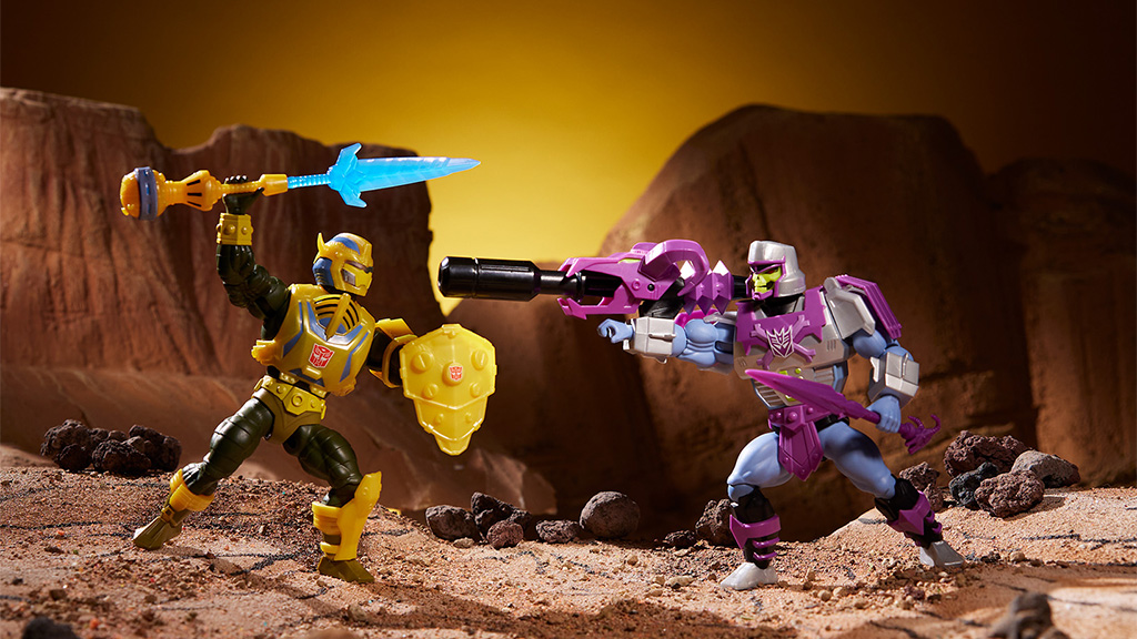 Skeletor se sada udružuje s Megatronom iz svijeta Transformersa. Ovaj neočekivani savez ujedinjuje snage dvaju kultnih zlikovaca, što obećava uzbudljive preokrete za obožavatelje. Suradnja koju je najavio Mattel otvara nove mogućnosti u pripovijedanju i svijetu kolekcionarskih figura. Zajednički planovi ova dva lika mogu predstavljati ozbiljnu prijetnju njihovim herojima i zasigurno će donijeti nezaboravne trenutke za obožavatelje.Bumblebee i Man-At-Arms sukobljavaju se u ovoj herojskoj akcijskoj figuri. Ova posebna igračka proizvedena je od strane Mattela i savršen je izbor za svakog kolekcionara i obožavatelja. Zahvaljujući detaljnoj izradi i pomičnim udovima, figure vjerno prikazuju borbu dvaju kultnih likova, tako da i djeca i odrasli mogu doživjeti uzbuđenje avanture.