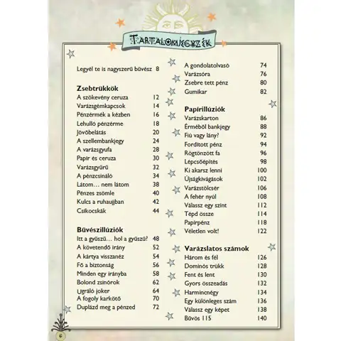 Svijet mađioničara pun je tajni koje ne možeš samo tako naučiti. Za to ti je potrebna knjiga o mađioničarima u kojoj ćeš pronaći sve trikove. Ova knjiga na više od 200 stranica sadrži opise trikova, a uz njih možeš pronaći i slike kako bi ih lakše shvatio. Jedna od najboljih stvari u knjizi je to što su za izvođenje trikova potrebni samo oni predmeti koje sigurno možeš pronaći u kućanstvu. Nauči trikove i iznenadi svoju obitelj kod kuće ili nastupaj na nekoj priredbi i vjeruj, na kraju ćeš ostvariti ogroman uspjeh u zabavnoj atmosferi.