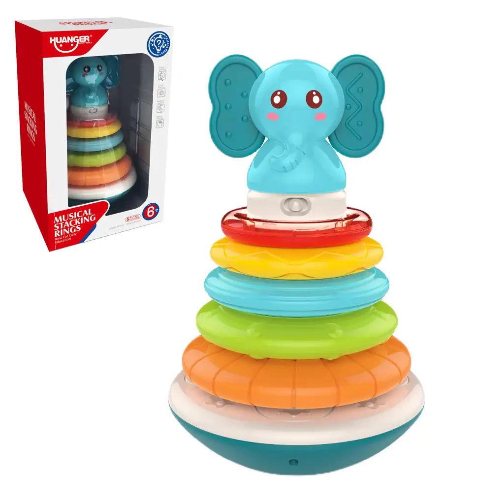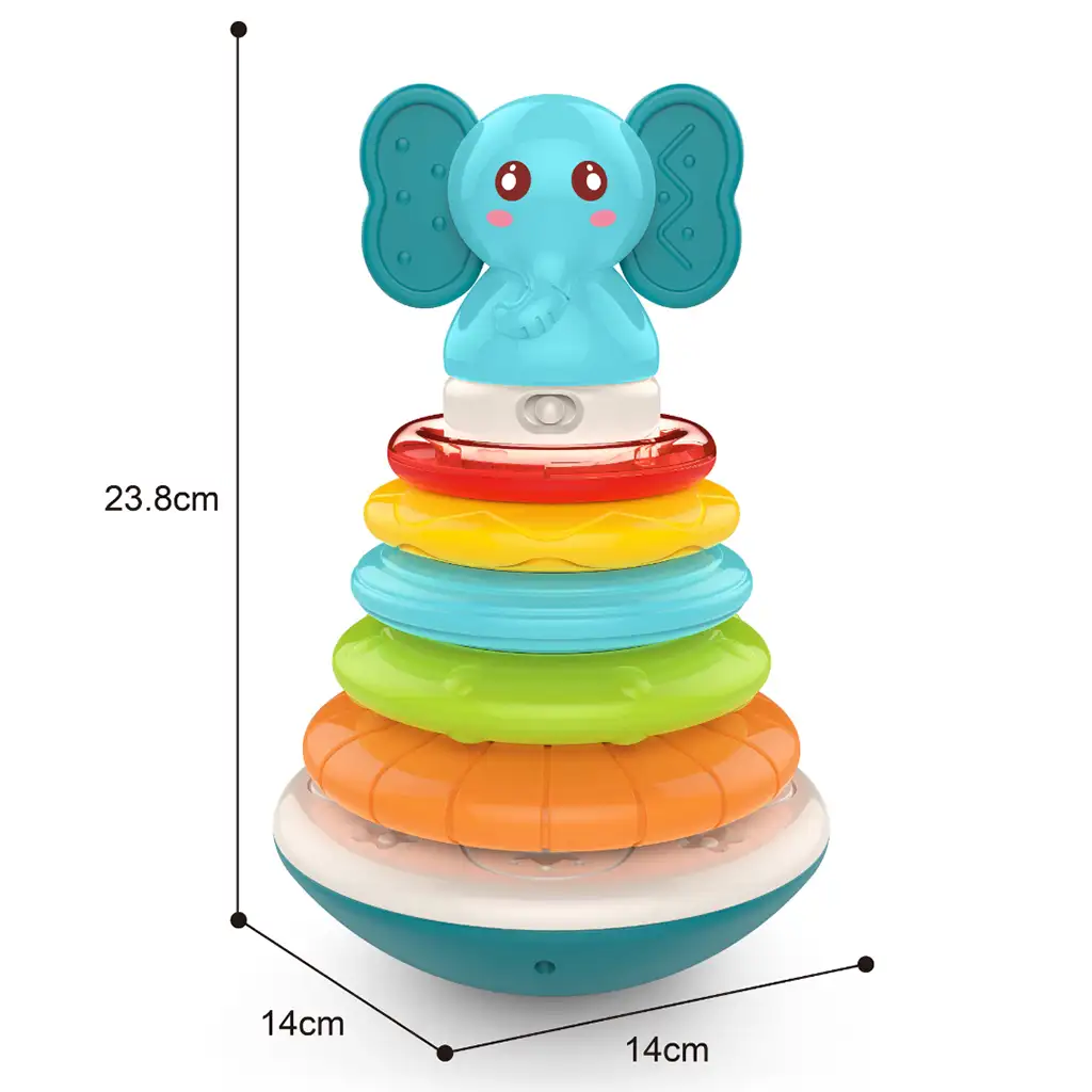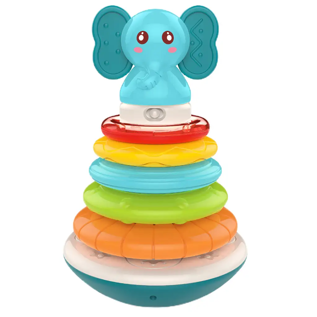 Igra gradnje tornja s slonom sa zvukom je uzbudljiva i interaktivna igra koja će sigurno zainteresirati i zabaviti malu djecu! Igra se temelji na sferičnoj bazi na kojoj se nalazi pet prstenova različitog osjećaja na dodir. Postavljajući te prstenove u pravilnom redoslijedu na bazu, može se izgraditi šareni toranj.