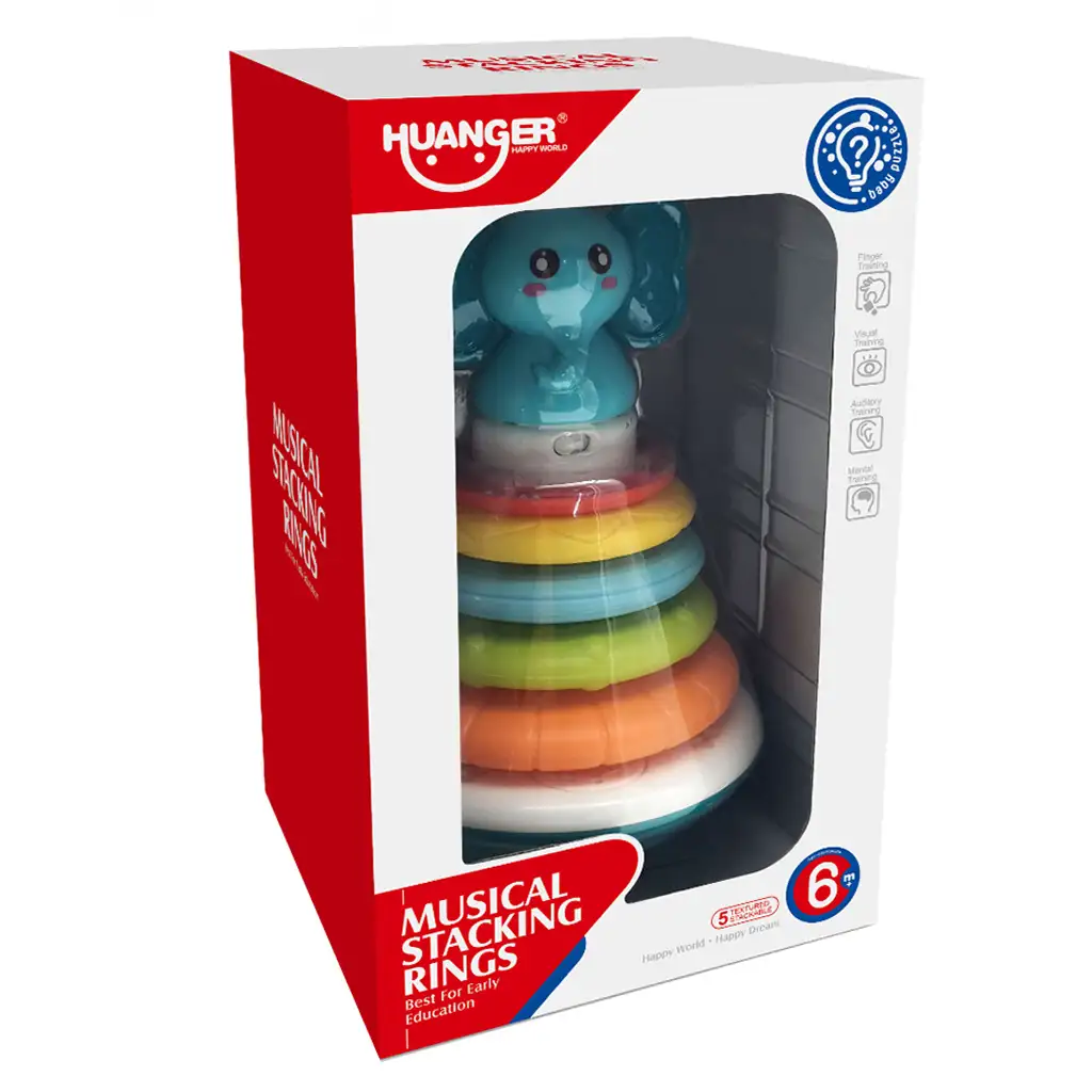 Slon, koji sjedi na vrhu igre, odmah privlači pažnju djece svojim slatkim izgledom i pokretima. Osim toga, igra ima i zvučne efekte, tako da kada se prstenovi postavljaju na svoje mjesto ili kada toranj padne, djeca mogu doživjeti iskustvo uz pratnju zvukova.