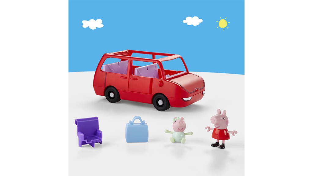 Peppa i njezina obitelj spremni su odvesti kući malu Evie! Djeca sada mogu voziti Peppu i Evie u obiteljskom automobilu, koji ima još više mjesta za rastuću obitelj. Automobil ima otvarajuća i zatvarajuća vrata, funkcionalan prtljažnik, kao i razne automobilske dodatke. Ova igračka odlična je prilika za djecu da odigraju svoje omiljene scene, dok razvijaju svoju maštu i socijalne vještine.