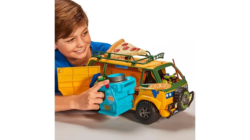 Preporučeno za djecu od 4 godine i starije, Pizza Vatrogasni Dostavni Kamion je tajno oružje kornjača u njihovoj borbi protiv Superfly-a i njegove zle vojske. Kamion je dizajniran kao što je viđen u filmu, od zelene i žute boje do ručno nacrtane slike pizze na njegovoj strani. Kada prvi put otvorite pakiranje, nekoliko labavih dijelova treba sastaviti, pa nadzor odraslih može biti koristan za mlađu djecu. Mehanizam za ispaljivanje pizze također zahtijeva tri AA baterije (nisu uključene), pa odrasli mogu pomoći da se one umetnu prije igre.