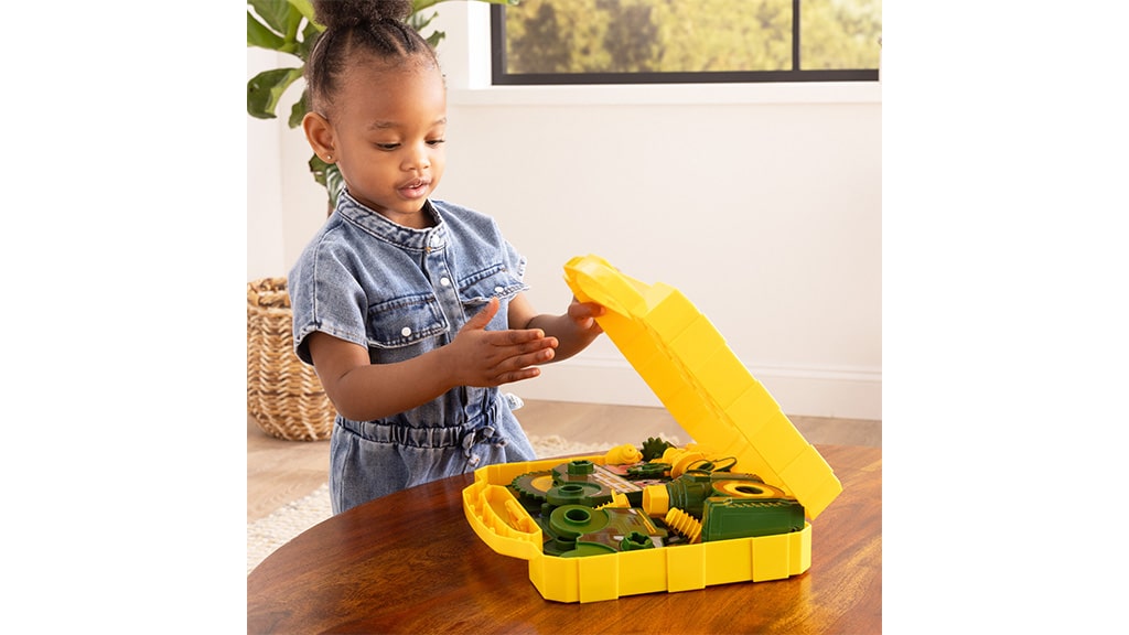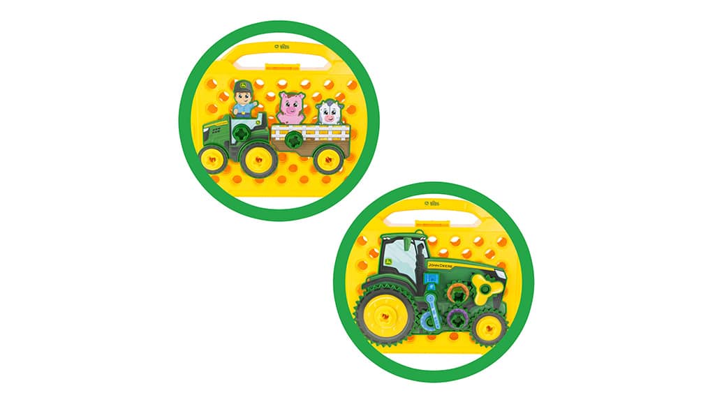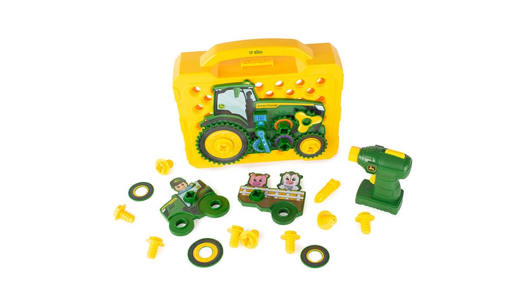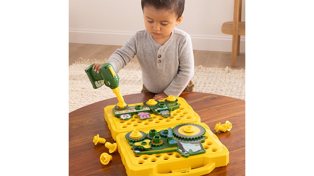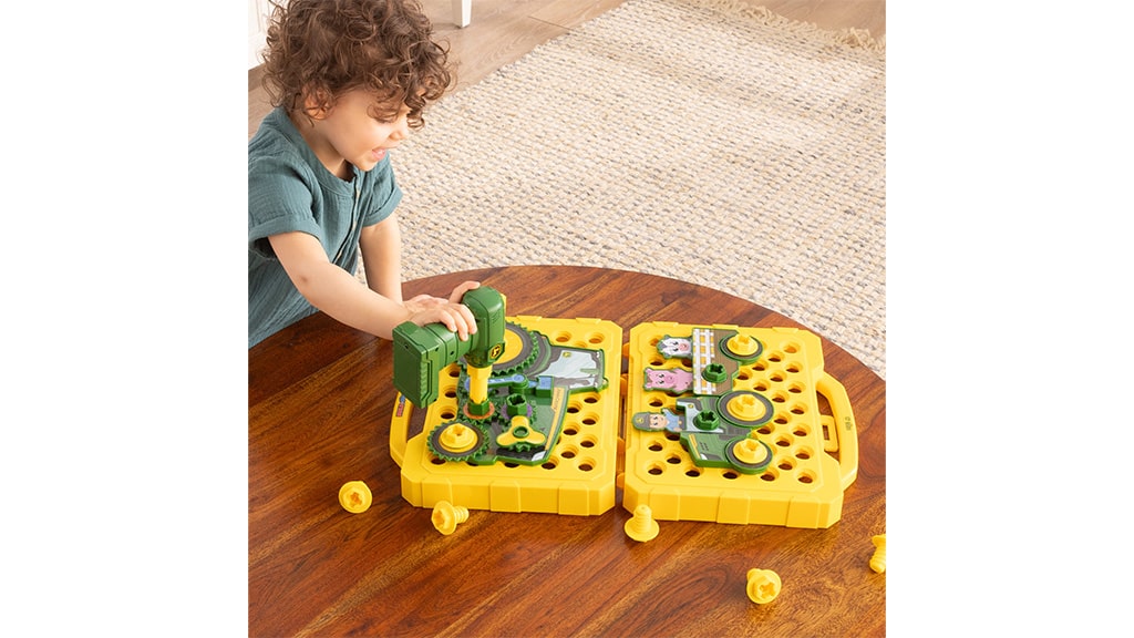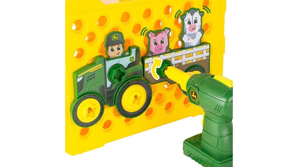 John Deere Build-A-Buddy Activity board sadrži dvije različite farme scene. Ova igračka pruža izvrsnu priliku djeci da kreativno istražuju seoski život, dok razvijaju svoje fine motoričke vještine i sposobnost rješavanja problema. Šarene, detaljne scene pomažu u razvijanju mašte i osiguravaju sate zabave.Kod malih se razvijaju fine motoričke sposobnosti dok pritiskaju gumb bušilice. Ova aktivnost nije samo zabavna, već pomaže i u razvoju koordinacije ruka-oko te preciznih pokreta. Takve igre doprinose razvoju spretnosti ruku, što će kasnije biti korisno pri pisanju, crtanju i drugim svakodnevnim aktivnostima.