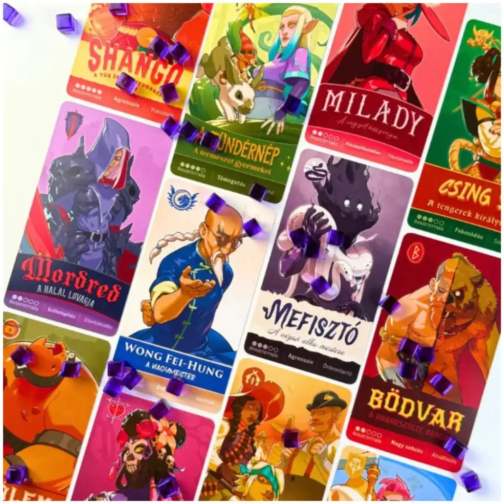 Bogat sadržaj: table likova, karte, žetoni i pločice za raznovrsne mečeve