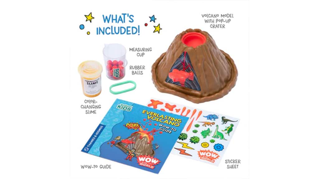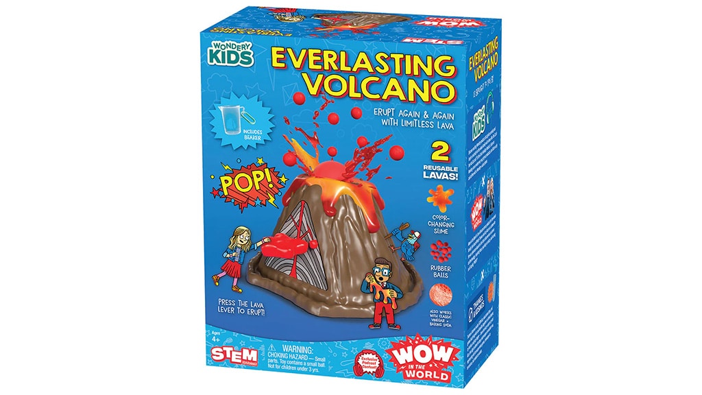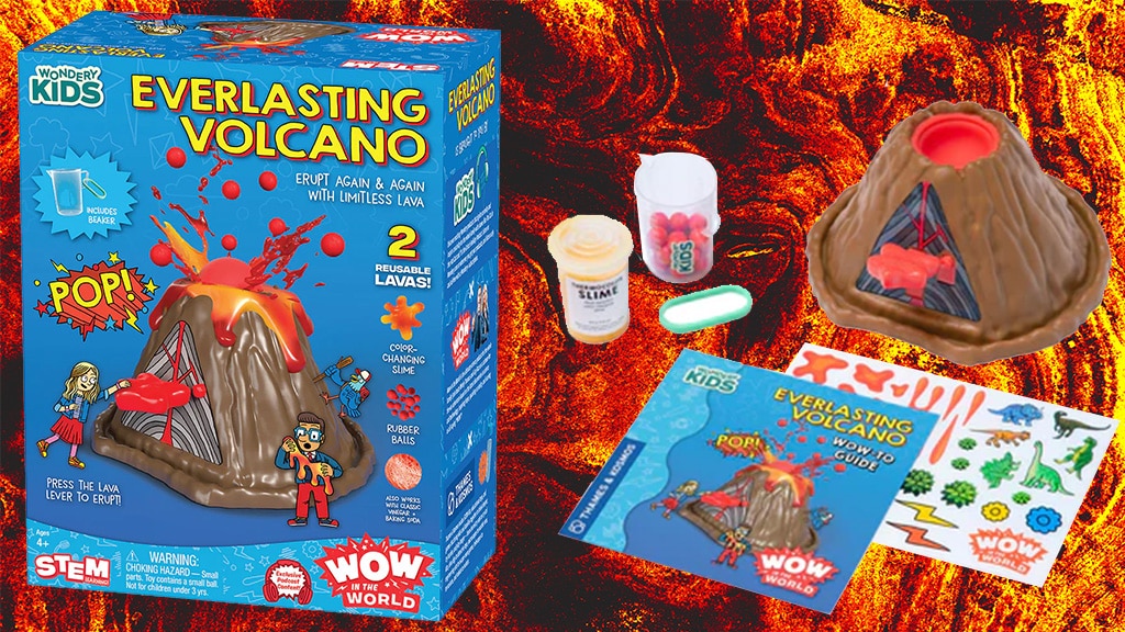 Thames & Kosmos Vječni vulkan je višekratni znanstveni eksperiment koji ponovno i ponovno eruptira. Kao dio serije Wow in the World, ovaj znanstveni set temelji se na nagrađivanom znanstvenom podcastu za djecu i odrasle. Djeca mogu napuniti obojenu sluz, male gumene loptice ili ocat i sodu bikarbonu kako bi izazvali znanstvenu erupciju. Sa sluzi i gumenim lopticama, vulkan lako eruptira pritiskom na polugu. Set sadrži potpuno obojeni, osam stranica dugačak vodič koji sadrži upute i zabavne činjenice o znanstvenim reakcijama i vulkanologiji.