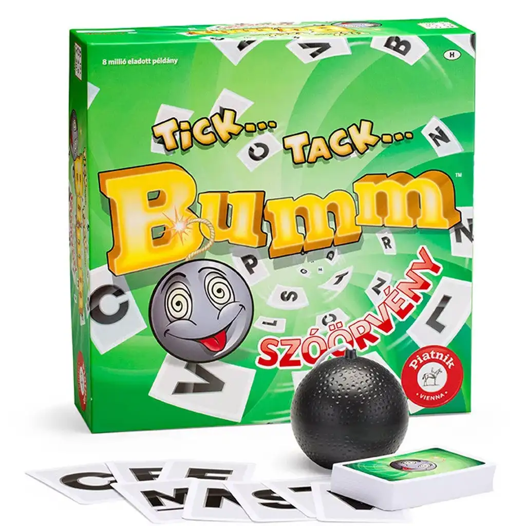 Munjevito razmišljanje, napetost i smijeh – to je Tick… Tack… Bumm – Vrtlog riječi, dinamična i uzbudljiva verzija klasične igre riječima Piatnika! Ovdje je svaka sekunda važna, jer bomba otkucava dok ti očajnički pokušavaš smisliti riječ koristeći slova iz vrtloga… a ako predugo razmišljaš, BUM – propuštaš priliku za osvajanje bodova!