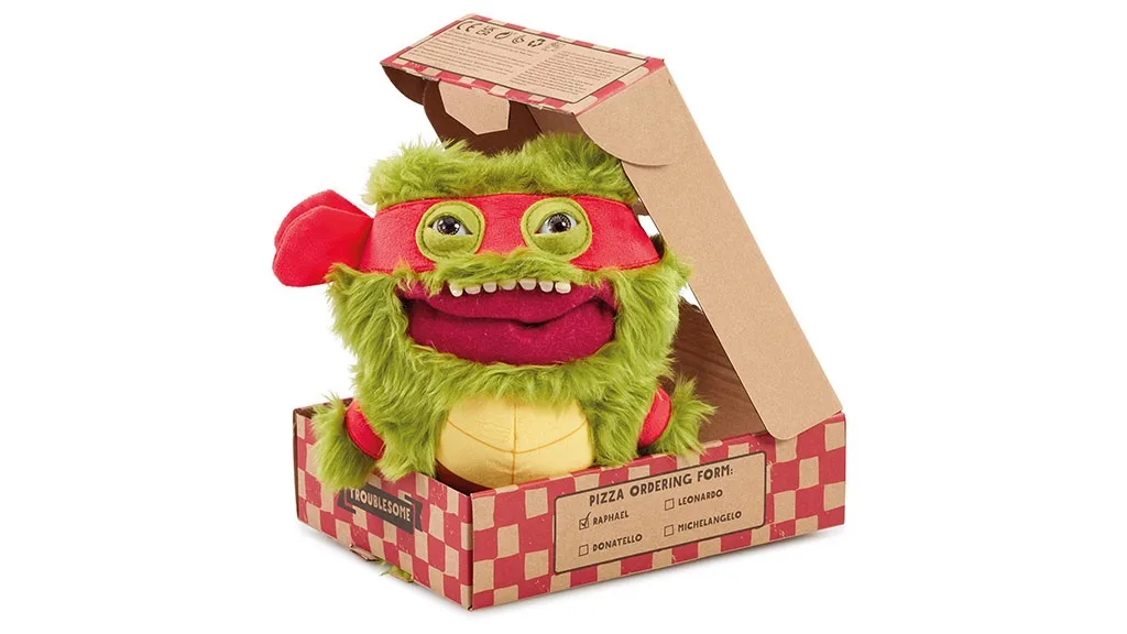 Mladi Ninja Kornjače Raphael je dobio novi izgled. Ova smiješna, ružna plišana igračka prikazuje Rapha kao divlju zvijer s ljudskim zubima, širom otvorenim ustima, poluotvorenim očima, rupom na BUTT-onu, crvenom maskom i kornjačinim oklopom na kojem su otisnuti sai mačevi.