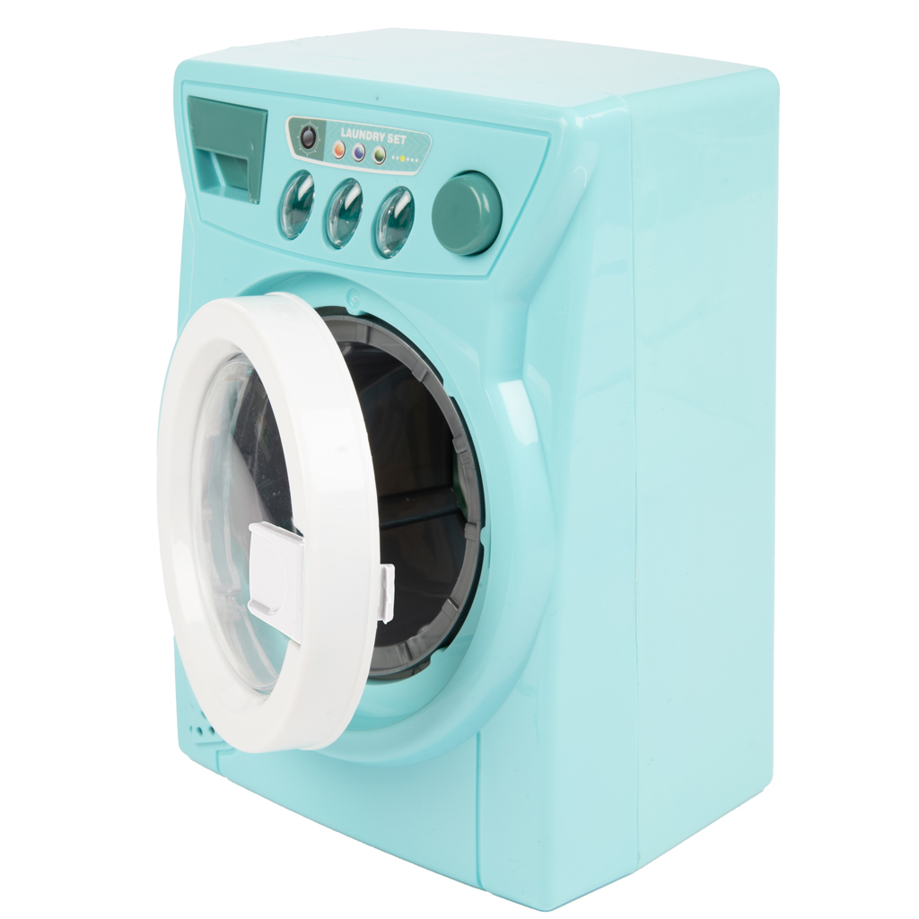 Tirkizna igračka perilica rublja sa zvučnim i svjetlosnim funkcijama izvrstan je izbor za djecu koja vole igrati „kućanske” poslove poput odraslih. Perilica realističnog izgleda ima okretni bubanj, otvarajuća vrata i vesele zvučne efekte koji igru uloga čine još uzbudljivijom. Nakon uključivanja, svjetlosne i zvučne funkcije čine doživljaj igre stvarnijim, pa se djeca mogu osjećati kao da koriste pravu perilicu.