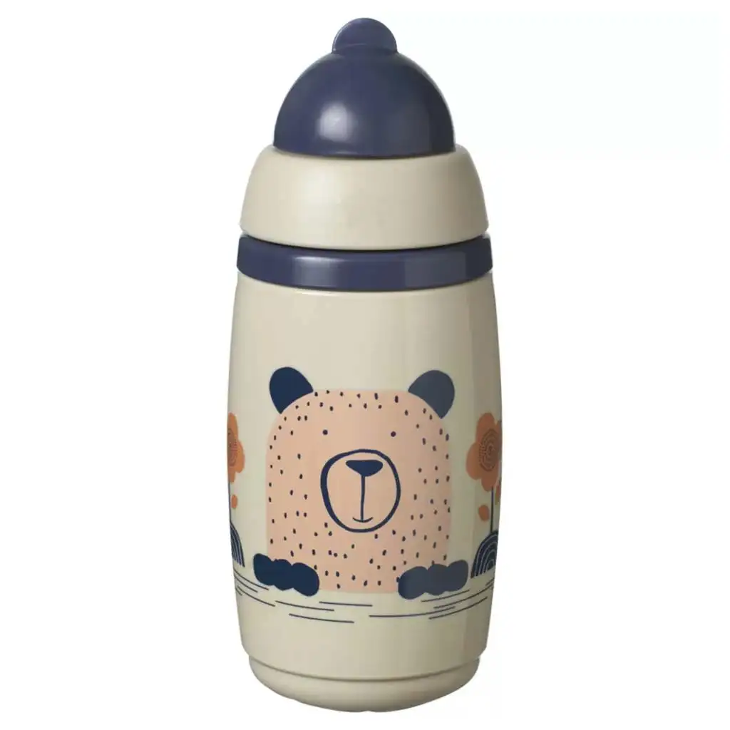Ugrađena slamka olakšava pijenje i potiče pravilan razvoj pokreta usta i jezika. Izolirano tijelo čaše omogućuje da piće dulje zadrži svoju temperaturu, pa voda ili čaj ostaju svježi. Ventil protiv curenja sprječava prolijevanje, što čašu čini sigurnom za upotrebu u torbi ili automobilu, izbjegavajući neugodne nezgode.