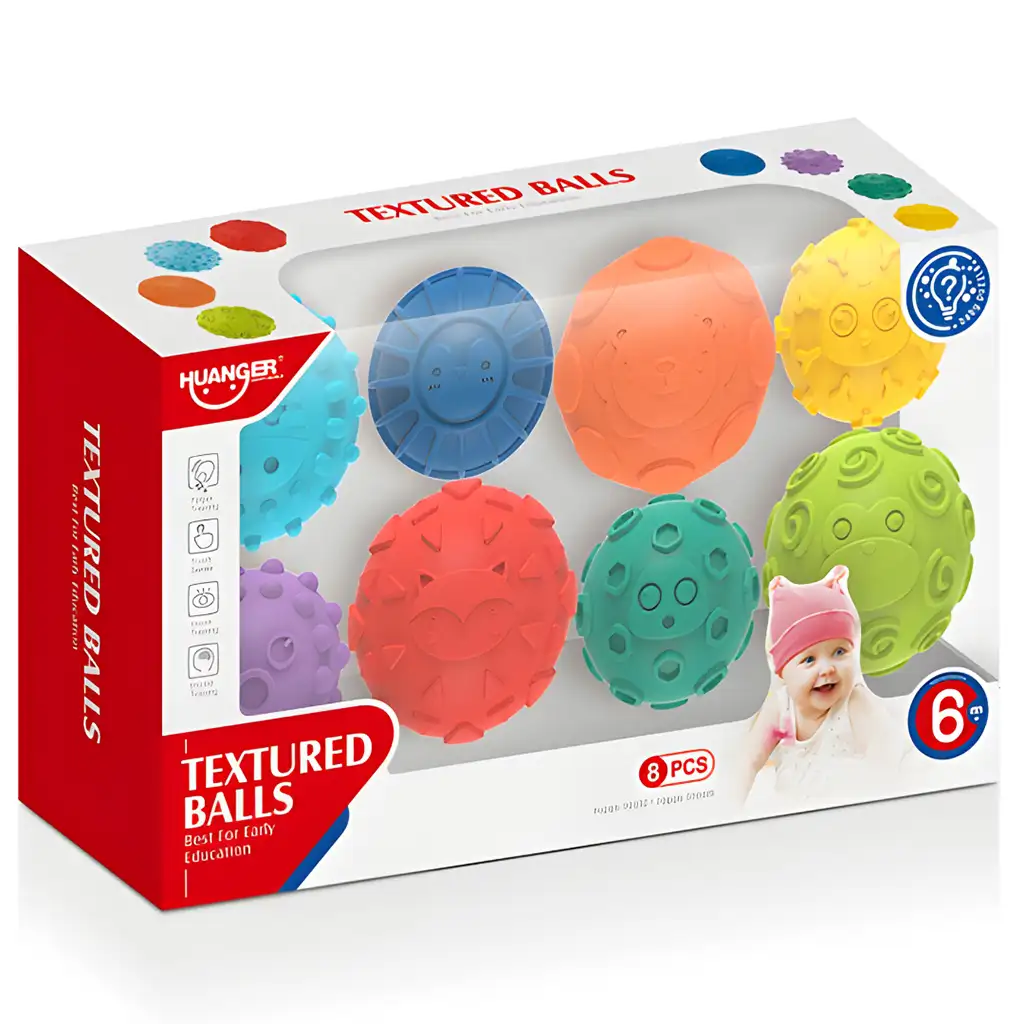 Set od 8 mekanih lopti za razvoj osjeta dodira idealan je izbor za svako dijete koje želi razvijati svoj osjet dodira i osjetljivost dok se zabavlja. Set sadrži 8 lopti različitih veličina, boja, uzoraka i tekstura, pružajući tako raznolika iskustva djetetu.