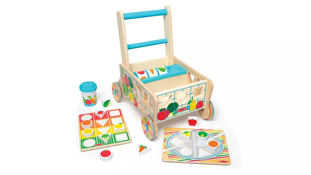 Ova košarica za kupovinu ima interaktivne funkcije, uključujući valjak s slikama hrane, puzzle ploče, otvore za oblike i velike komade hrane. Djeca mogu gurati kolica, a komadi se lako mogu pohraniti unutar nje kako bi se olakšalo čišćenje.