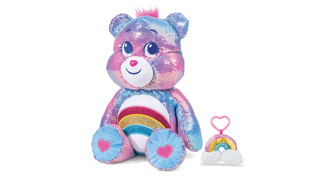 Ovo je ograničeno izdanje srednje velike plišane igračke koja nosi sjajnu duginu značku na trbuhu i dugini šljokice. Djeca mogu zagrliti ovog sjajnog plišanog prijatelja i širiti njegovu poruku o radosti.