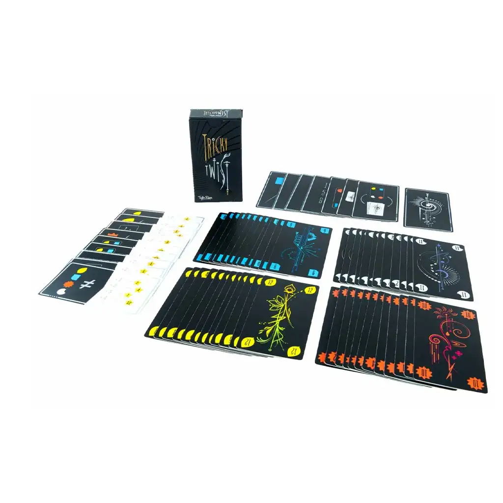 Društvena igra Tricky Twist je zaista domišljata i dinamična kartaška igra s nošenjem štihova, u kojoj se brzo otkriva: ne pobjeđuje uvijek onaj tko odigra najjaču kartu. Tijekom igre igrači naizmjenično odigravaju karte, a u svakom štihu moraš odlučiti hoćeš li pokušati pobijediti snagom ili ćeš namjerno "promašiti", kako bi kasnije mogao izgraditi vrijedne kombinacije. Pravila nošenja štihova su poznata – najveća karta tražene boje nosi štih – no prava čar igre Tricky Twist leži u tome da ni promašena bacanja nisu izgubljena. Od njih možeš slagati brojevne nizove i posebne skupine, koje na kraju donose značajne bonus bodove. Svaka odluka ima dvostruku težinu: trenutni uspjeh ili dugoročna prednost? Kratko trajanje, jednostavna pravila i duboke taktičke mogućnosti čine ovu igru idealnim izborom za obiteljske večeri i druženja s prijateljima, gdje je „prepredeno“ iskustvo zajamčeno.