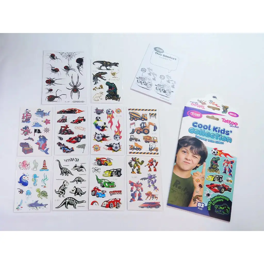 Ako tražiš zaista zabavan set tetovaža s raznim temama i stilovima koji će zasigurno oduševiti djecu, onda je ova kolekcija pravi pogodak!