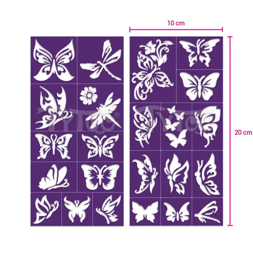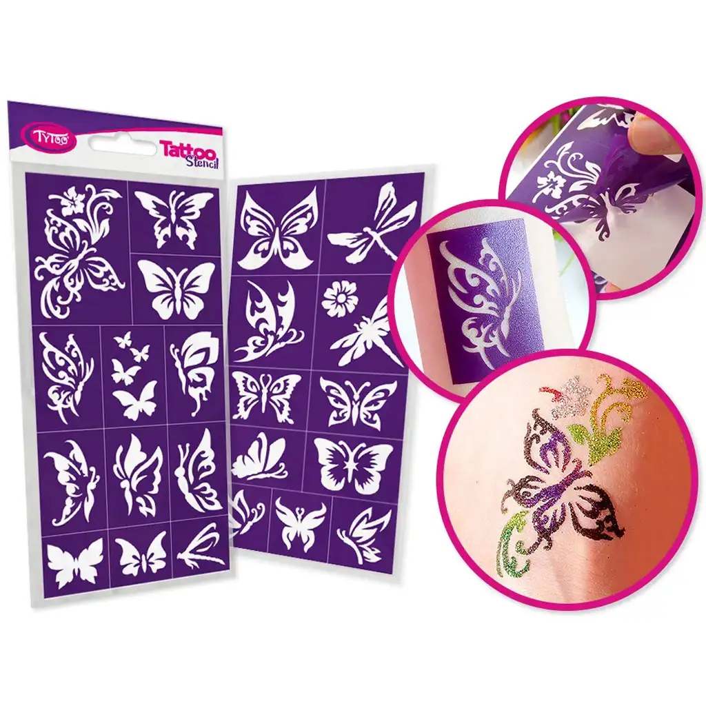 TyToo: Set od 23 šablona za tetoviranje s uzorkom leptira s gliterom