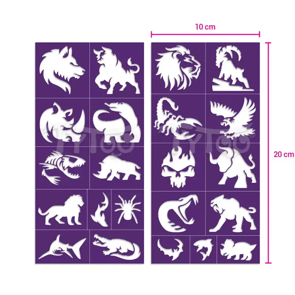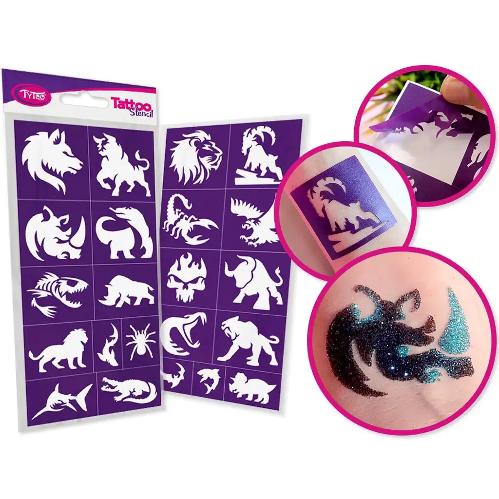 TyToo: Set šablona za tetovažu sa šljokicama – Divlje životinje, 22 komada