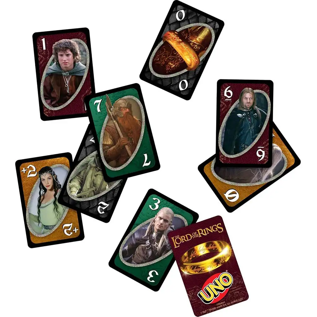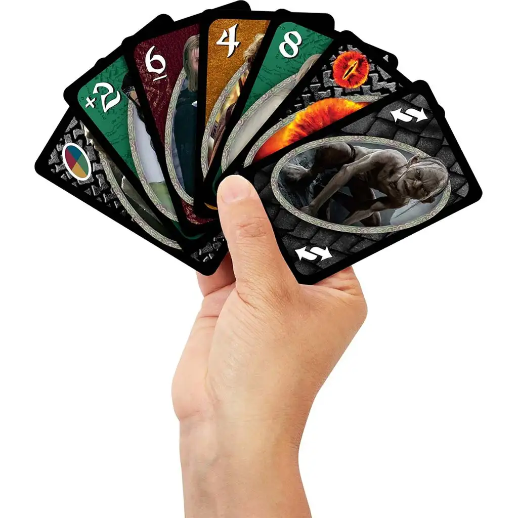 Igra se odvija kao u klasičnom UNO-u: cilj igrača je što brže se riješiti svojih karata podudaranjem boje ili broja. Poznate akcijske karte – kao što su +2, promjena smjera ili preskakanje reda – donose uzbudljive preokrete, a pri polaganju posljednje karte naravno ne smije izostati slavni povik „UNO!”. Tematika Gospodara prstenova daje dodatni ugođaj svakoj rundi, bilo da je riječ o obiteljskoj igri ili druženju s prijateljima.