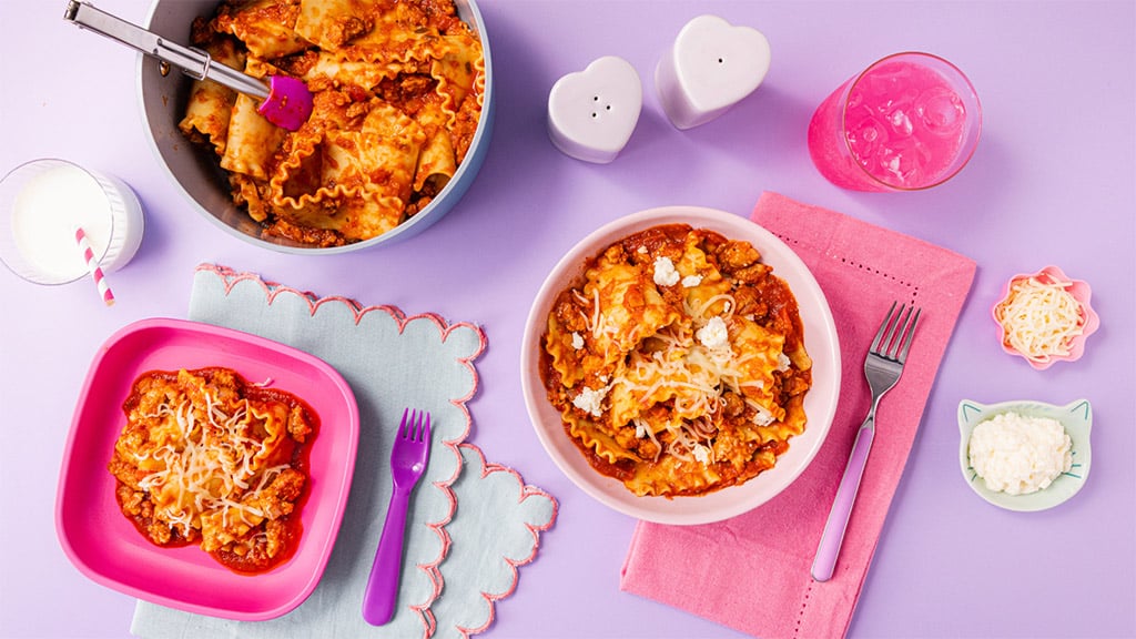 U zbirci se nalazi osam recepata: Gabbyina tjestenina za lazanje s puretinom iz jedne tave; Carlitina slatka, češnjakova zdjela s piletinom i rižom, obogaćena bananom i umakom od kukuruza; CatRatov hrskavi pileći sendvič s pečenim krumpirićima iz pećnice; MerCatov slatki teriyaki losos pečen u jednoj posudi s povrćem i rižom; Pandyjev pikantni, sirni pureći Purrito; Kitty pizza s trakicama tikvica; Cakeyjev sirni, slaninasti mesni fašir s govedinom i lepinjom iz tave; te Gabbyina omiljena perec-piletina s ranch umakom. Ove recepte obitelji mogu uvrstiti u svoj tjedni jelovnik do 17. listopada.